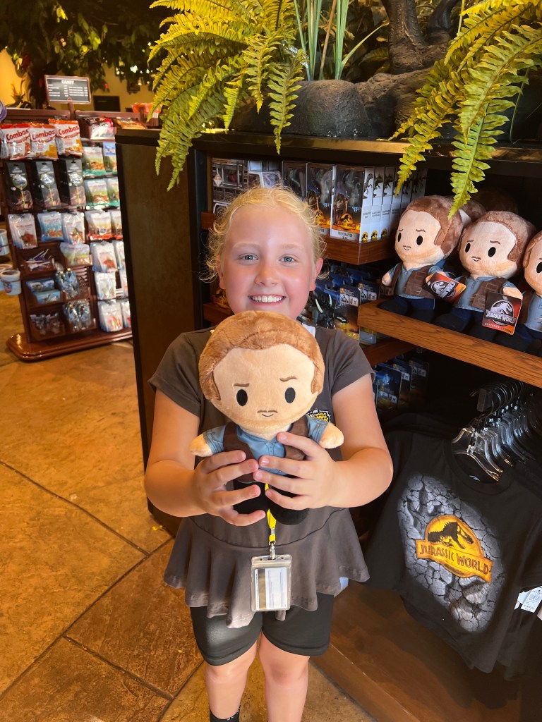 Our second day we planned on early morning extra hours at Islands of Adventure but realised there were no rides the girls wanted to go on, so headed in just before regular opening to cast a few spells instead. It was as manic as always in Hogsmeade so as soon as 9am hit we headed out into the rest of the park. We passed the Jurassic Park water ride and although the girls were apprehensive, they decided to give it a go as they love the films. Despite having to sing ‘Golden Slumbers’ to Winnie throughout the raptor enclosure bit because she doesn’t like the unknown at the best of times but especially not in the dark, they really enjoyed it. And it was made even better when we got off and Winnie spotted an Owen Grady toy that she fell in love with and bought herself, calling him ‘Pratty’ and deciding I could make him a Starlord outfit too!