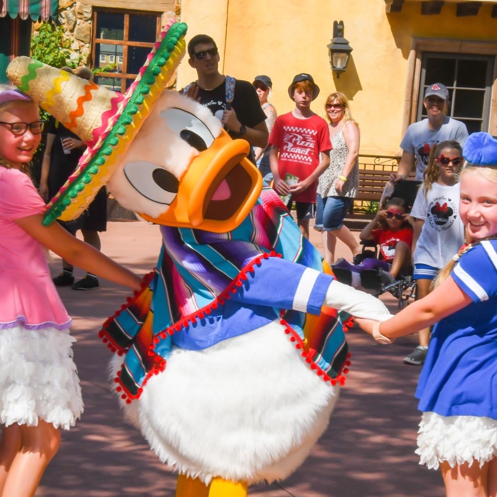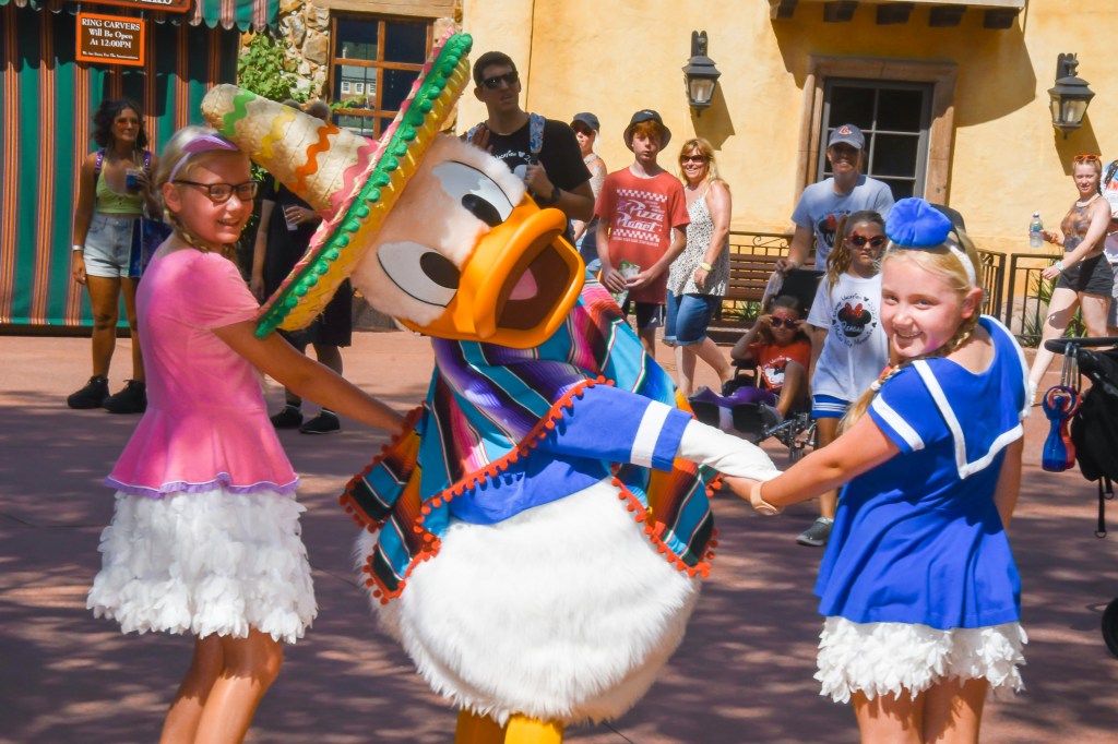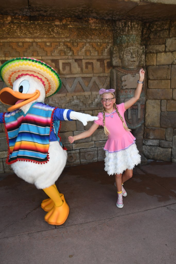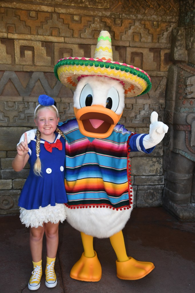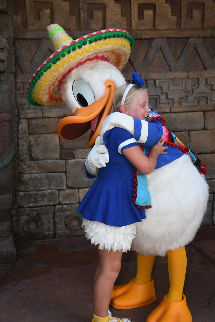 We didn’t get to the park for the extra half hour as there was a slight delay on the monorail, but the park was still really quiet. We managed to do Frozen, Soarin’, Living with the Land and the Grand Fiesta Tour before our group was called. We also had a fabulous meet with Donald in his Mexican outfit who spent ages with the girls, directing the Photopass photographer, before then taking their hands and walking off with them into Mexico! They loved it so much, although I bet the people behind us in the queue weren’t as happy about it as we were with him so long!