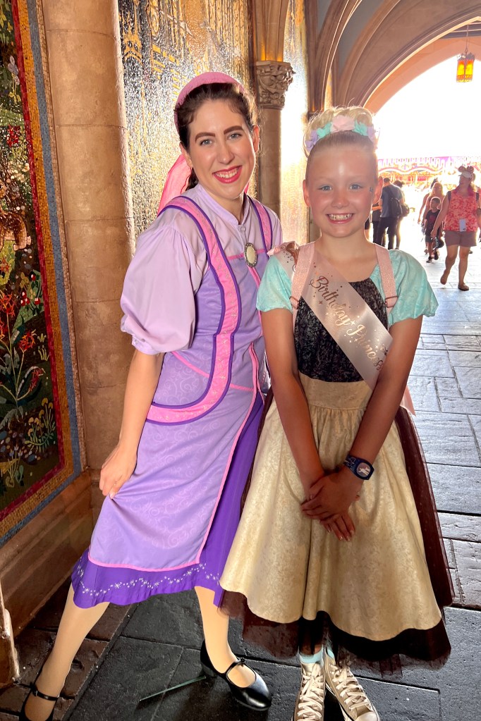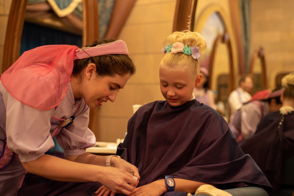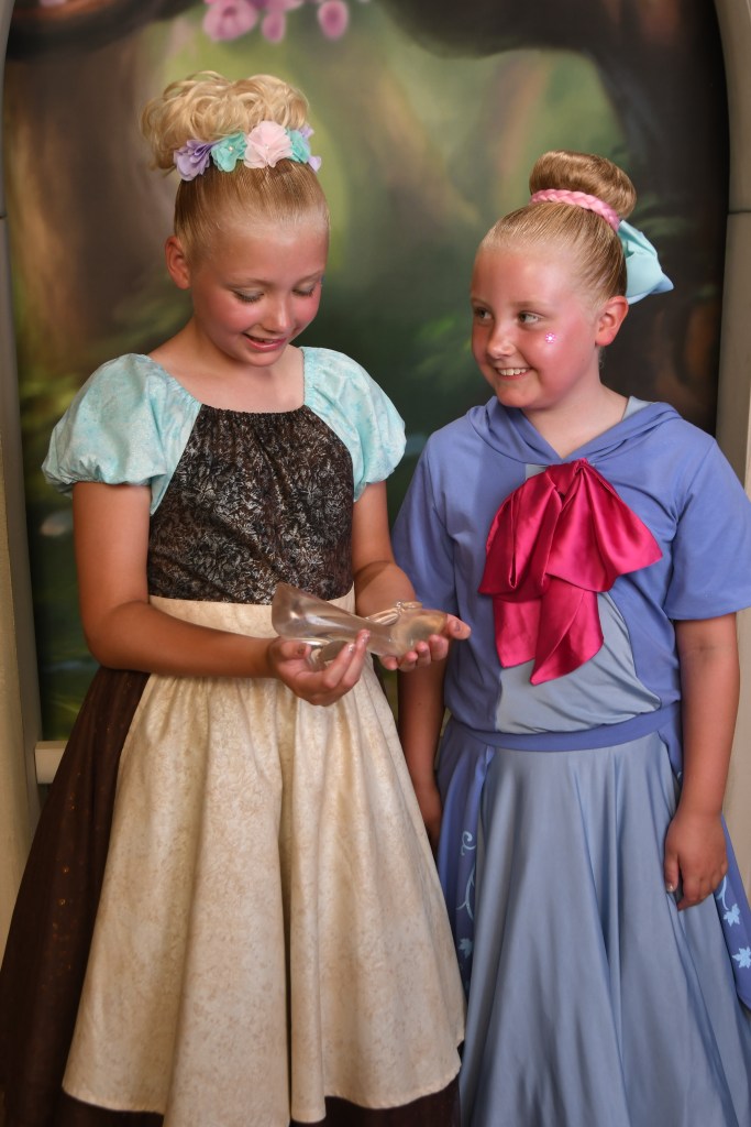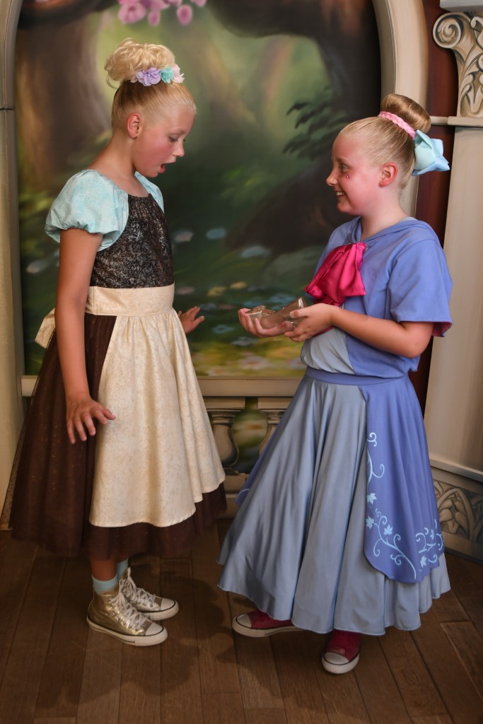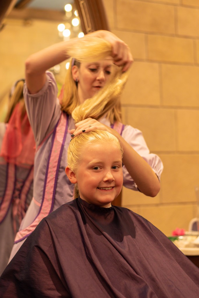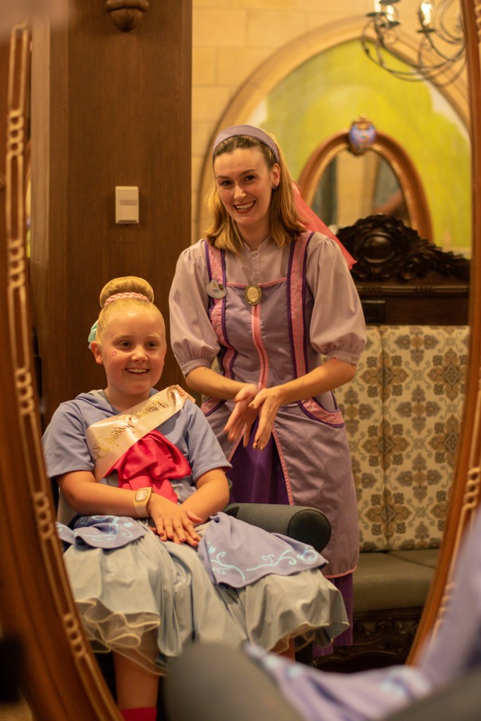 Polly’s past Fairy Godmother had been messaging me in the lead up to appointments becoming available and had promised to look out for us. As we left the changing room, she was waiting at the door to take us to the castle with another lovely apprentice, Libby. The girls were so happy. They had the best time getting made over, and never stopped chatting and giggling. Polly’s fairy godmother had told everyone they were coming and about their outfits, so they got lots of other fairy godmothers and godfathers coming up to them during the makeover too. They usually get a bit embarrassed with lots of attention but absolutely loved it today as it was done in such a friendly way. I’m so glad that although Polly is 11 now, she is still a little girl at heart who adores things like this. And the CMs make it so special.