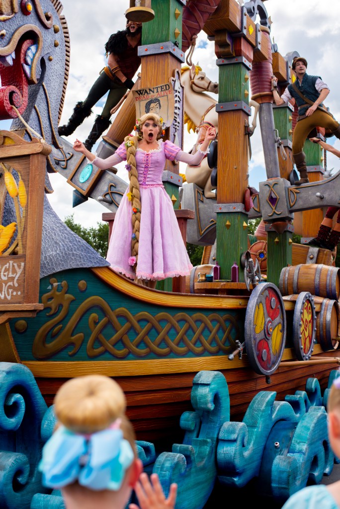 We literally walked down through the castle and stood in front as there was lots of space. It was right in the sun, but we could see the parade already so weren’t waiting around, and we got an empty castle photo while we were there which was perfect. The parade still felt a bit empty, but the characters were great and really interactive, and the girls loved it.