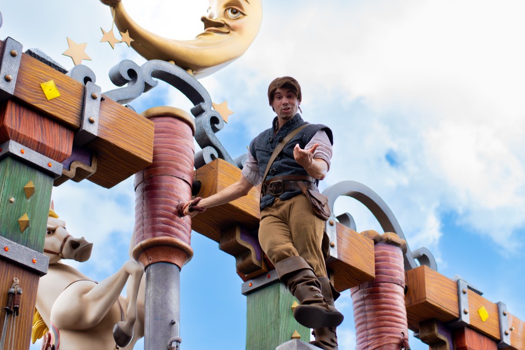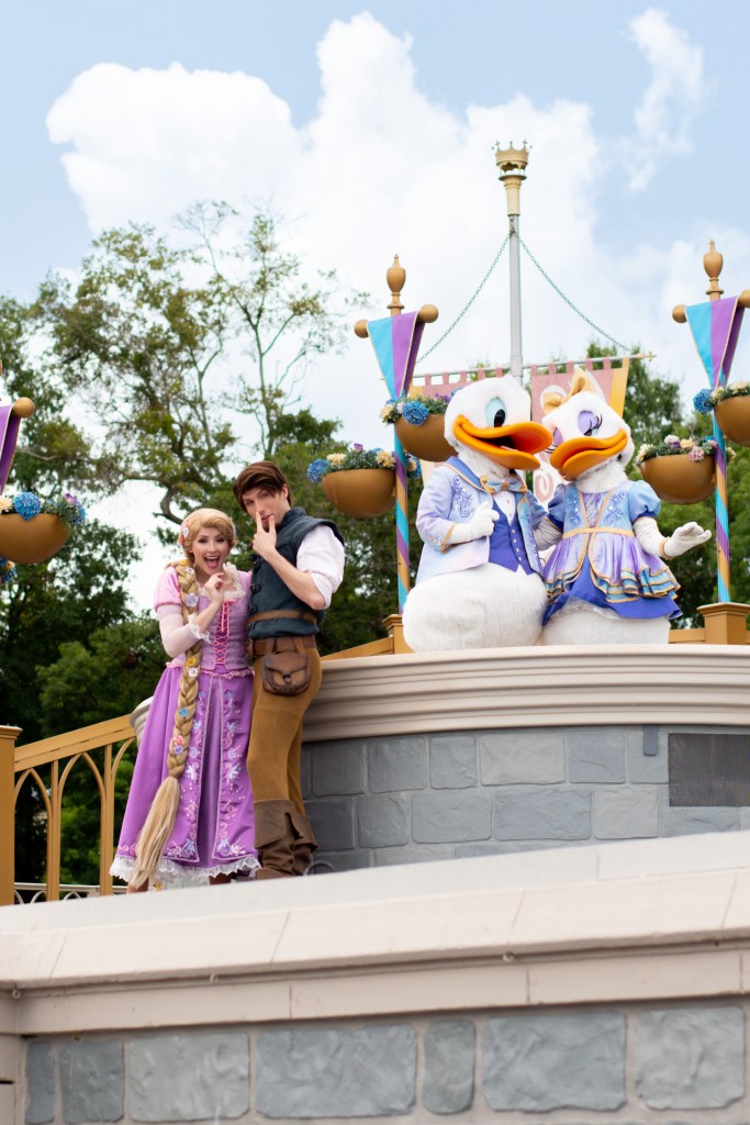 I packed a few bits before we headed to the quiet pool. After an hour and a half Polly came to tell me that Winnie really wanted to watch Festival of Fantasy but didn’t want to ruin anyones pool time, so she was going to pretend she wanted to get out so we could get to the park in time. This was slightly ambitious as it was already 11am and the parade started any 12 and we were soaking wet and, in our swimwear, but somehow, we managed to get to the room, changed and into the park for 12. We decided to stay by the train station as it was fairly quiet and, in the shade, (although the humidity was a killer) The parade was lovely and the characters were a lot of fun, especially Flynn who got Winnie to show him her smoulder!