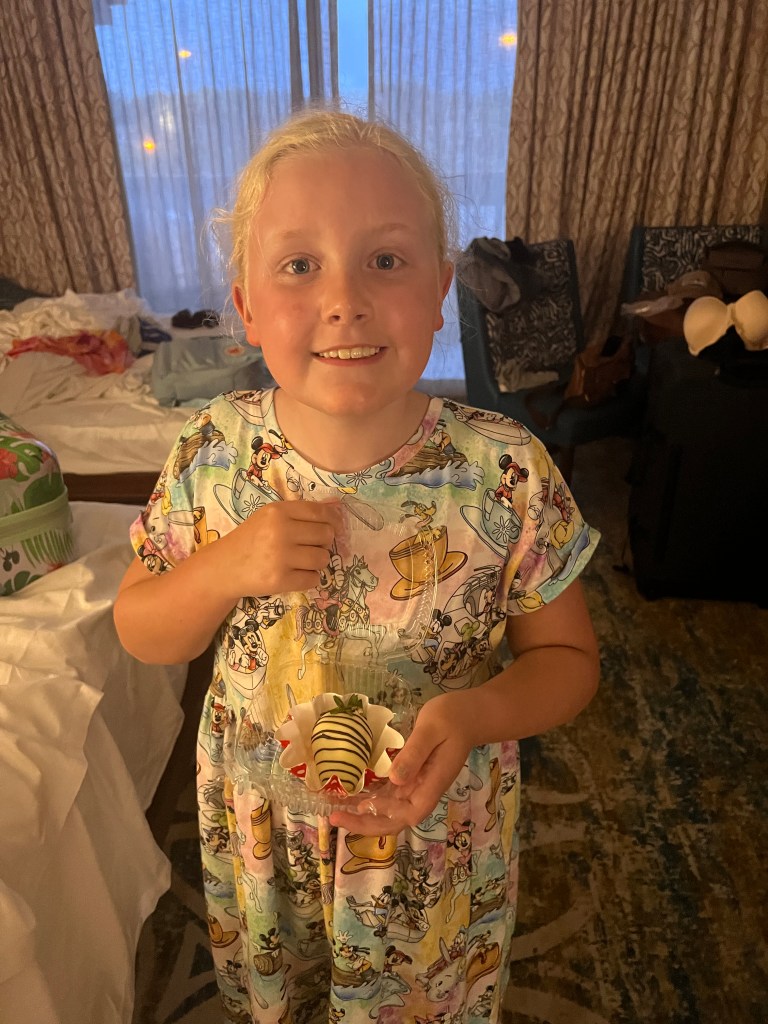 We had no set plan for the day as we’d done pretty much everything we wanted to, so played it by ear which are ways makes for the nicest, more relaxing days. We ended up meeting Rapunzel and Tiana, watching the castle show, riding Jungle Cruise and Pirates and doing the girls’ favourite, Carousel of Progress before an almighty storm hit. We actually only just got off Carousel as it stopped moving due to the storm. After waiting for about 10 minutes Winnie was getting into a bit of a state, so we decided to make a run for it. The water was so deep and the storm incredibly loud, but we made it to the ferry terminal and managed to get on the boat that was pulling in. The lightning was so close to us as we docked that Winnie got really upset, so we headed back to the room as fast as possible, grateful for the fact that our DVC building was the closest.