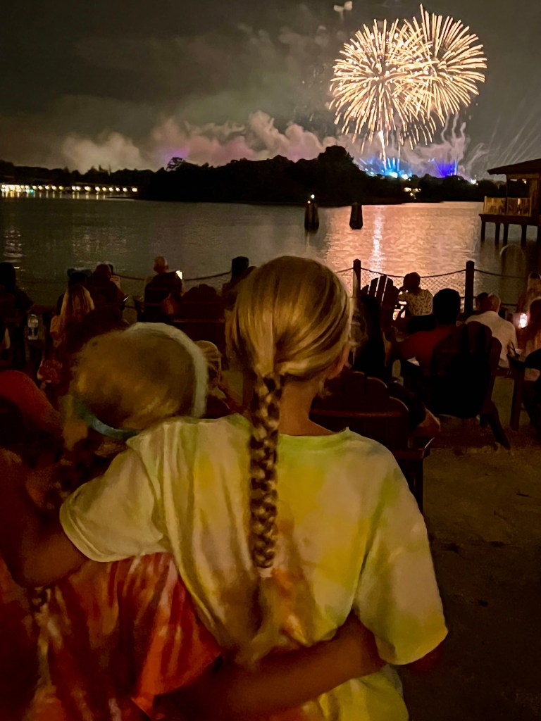 Just before 9 Polly came to life and declared she’d like to watch the fireworks. A quick panic to find dry shoes and we rushed to the beach just in time to see them. The girls hugged each other the whole time and it was the perfect end to the day. I love the fireworks inside the park, but this was perfect for us tonight. We are strongly Team Happily Ever After as it’s the first fireworks we saw together as a family, but the lyrics in Enchantment seemed so appropriate tonight to two little girls who are doubting themselves before starting new schools next week (especially Polly who’s finding the idea of secondary school so hard). I hope it helped them to realise that they can do anything if they believe in themselves because they really are the magic. A quick dance on the beach later and everyone was tucked up fast asleep in bed ready for home tomorrow. I know everything good has to come to an end, but we really aren’t ready to say goodbye.