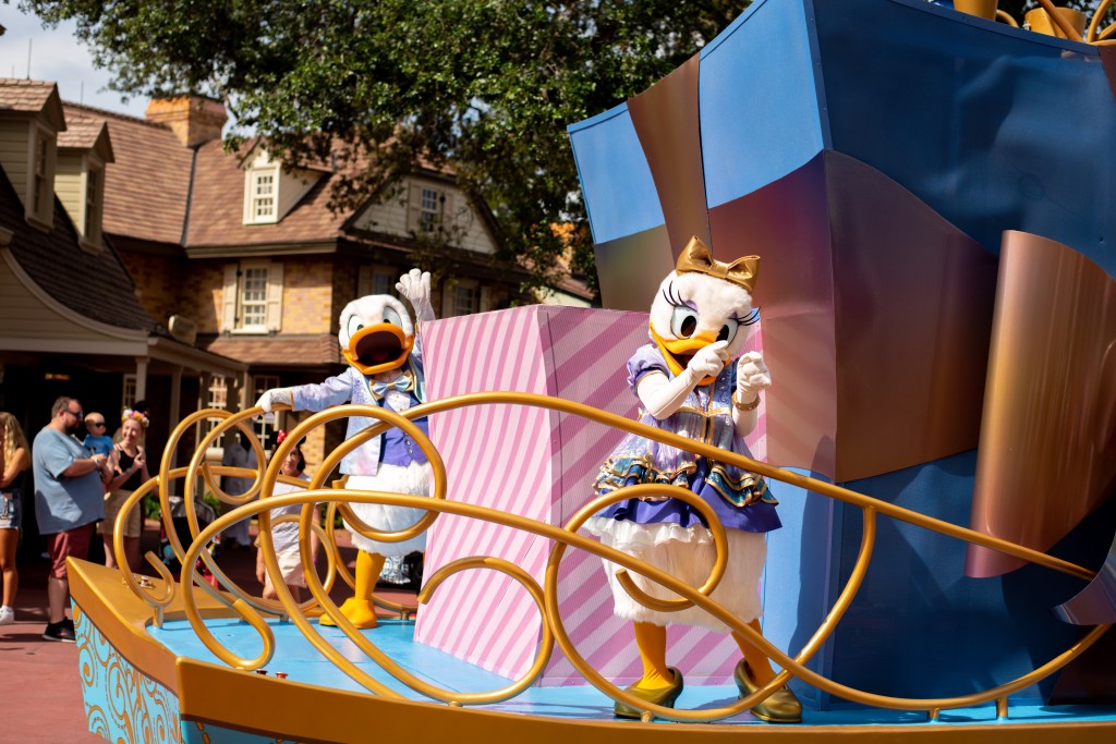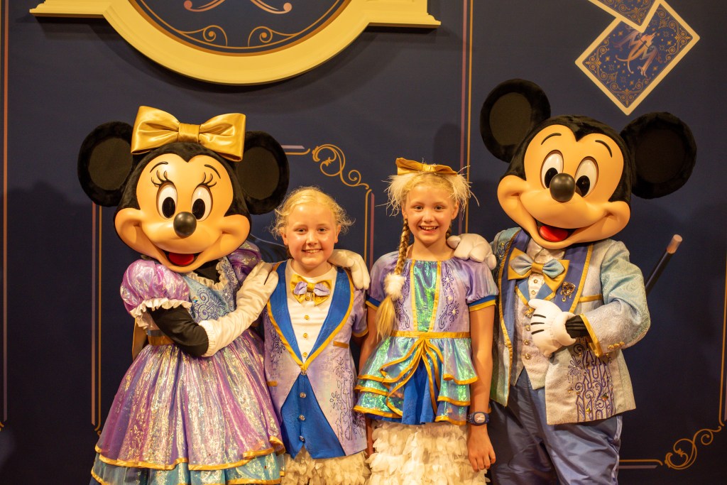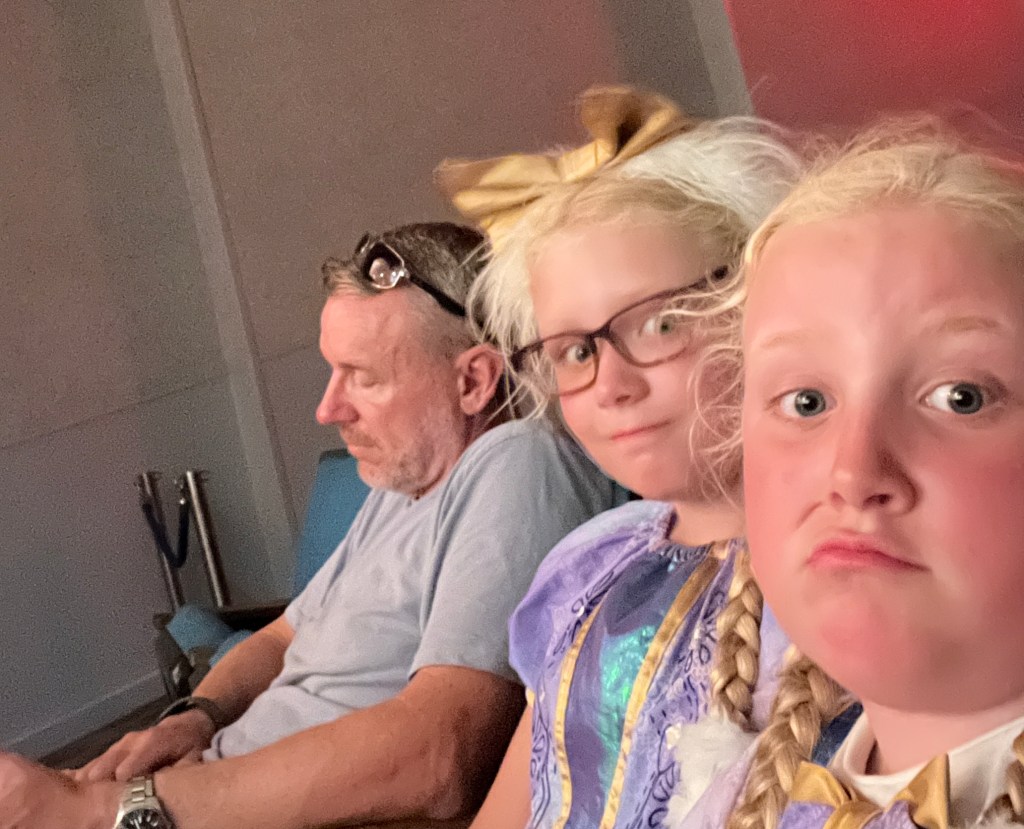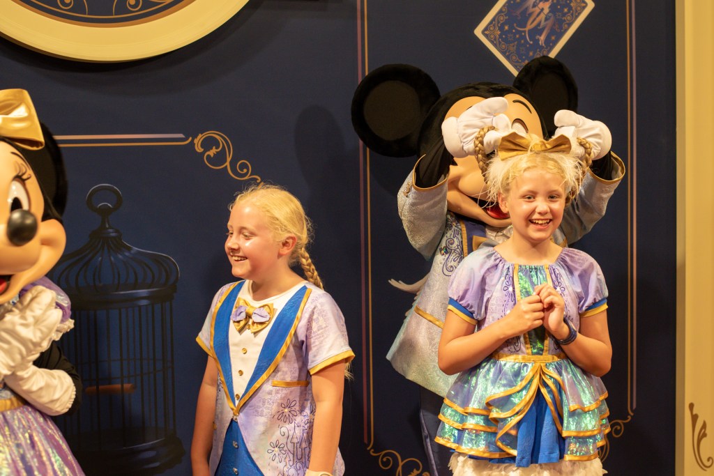 Steve waited for the cases to be collected and the girls and I set off to rope drop early hours. They wanted to do Speedway before the park opening show, and just managed it, which was great as Donald was really funny when he noticed them, trying frantically to get Daisy’s attention, but she was too busy posing, which made the girls giggle.