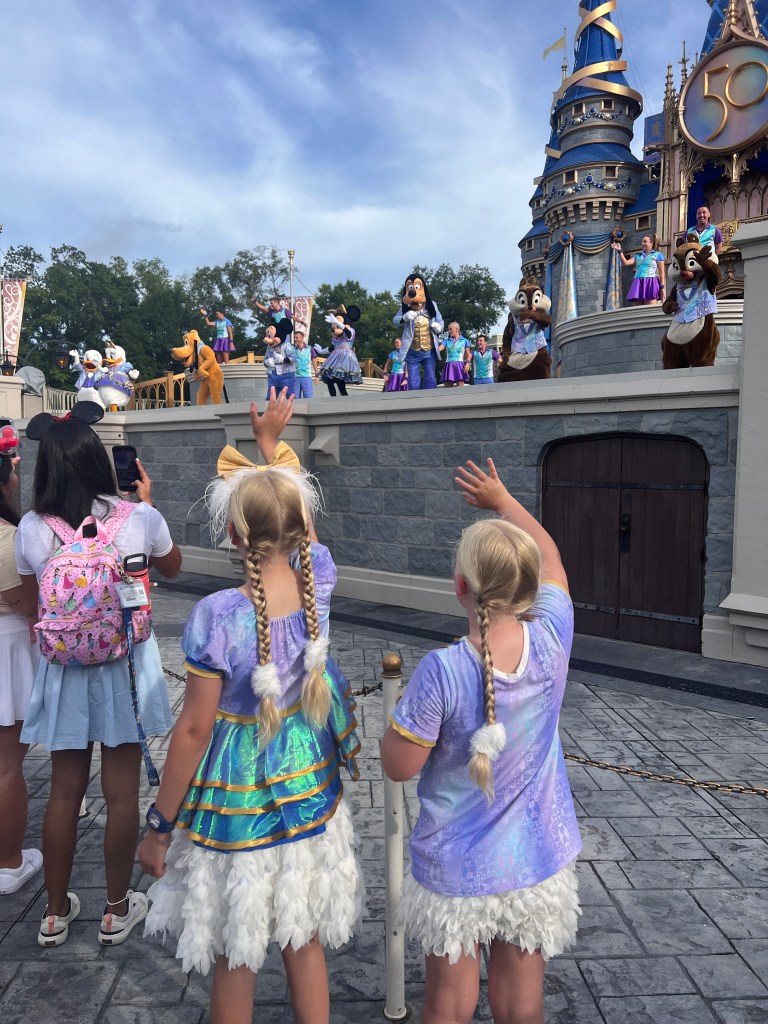 I’d set the alarm for 7 to finish packing early, giving us time to fully enjoy our last morning. At bedtime the girls couldn’t decide between a pool morning or Magic Kingdom, but as soon as they woke up, they knew that it was going to be Magic Kingdom for the win.