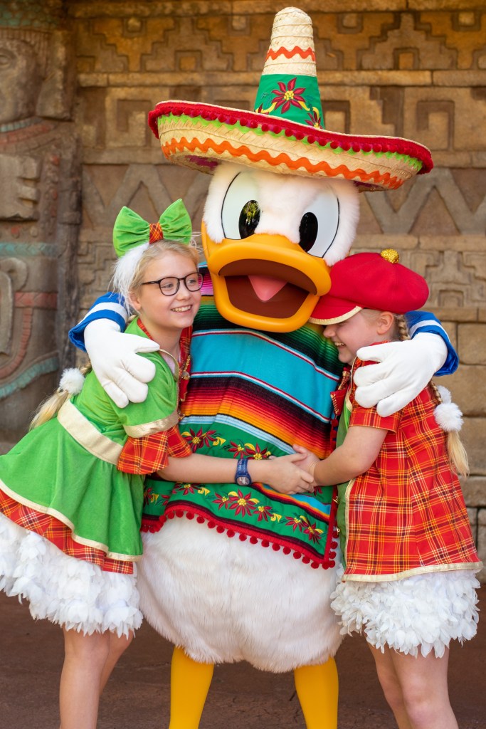 We decided that we would head to World Showcase and see what time the booths opened. We were a bit early so went to meet Donald which was a lot of fun. We then jumped in the queue for Pluto on the way to meet Steve (who had gone for a coffee!) before starting the cookie trail.