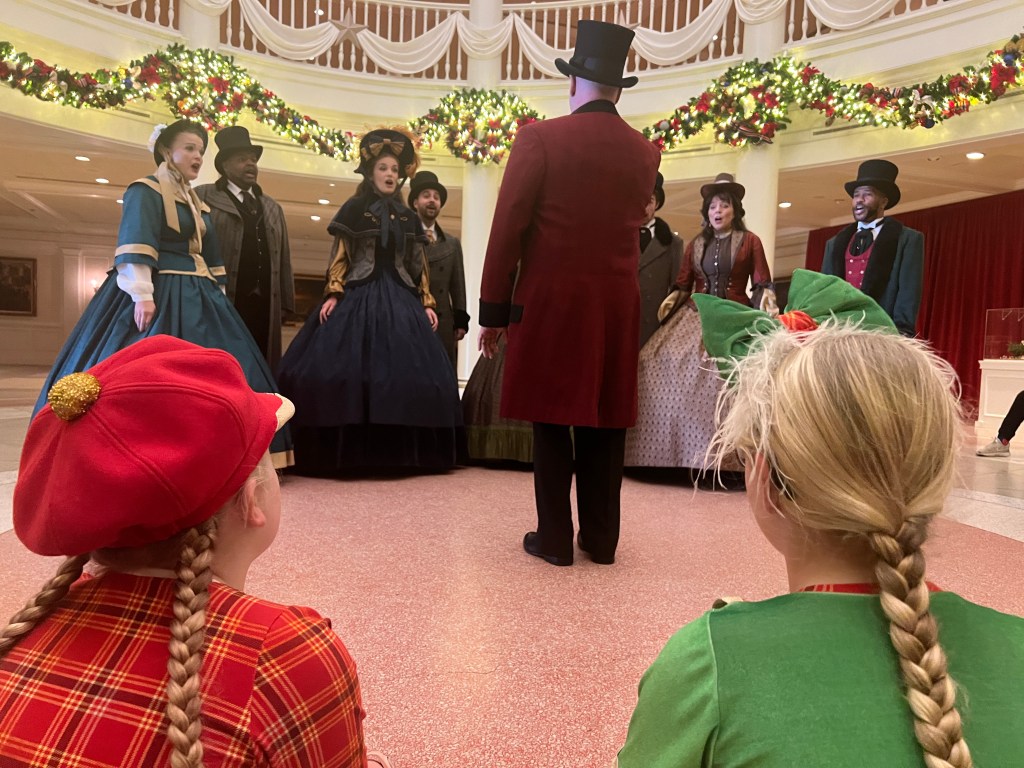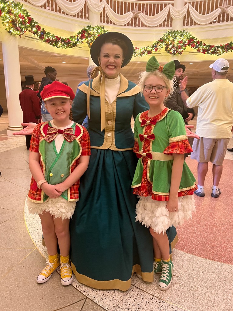 I’d been continually checking park pass reservations, and amazingly managed to switch tomorrow for Magic Kingdom, so we decided to hop over to Hollywood Studios to do the Christmassy bits there today instead. We went to the Frozen singalong first as it has a special Olaf finale with some of the Christmas themed Frozen songs, which the girls love. The girls then bought new Magic+ bands with leftover Christmas money.