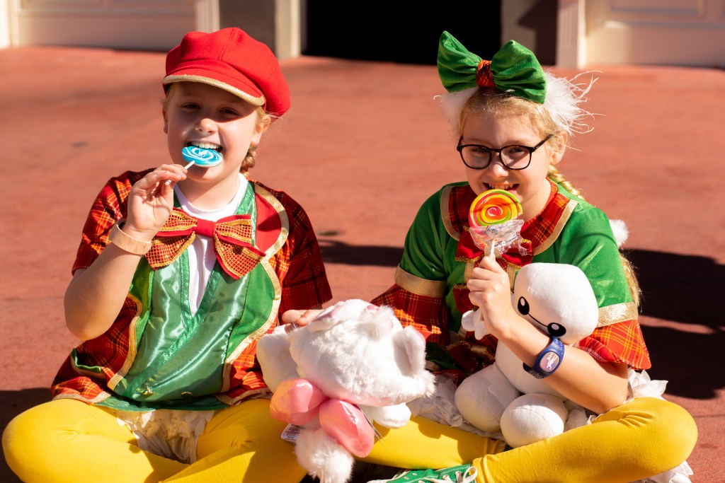 Plaza ice cream parlour has just opened, so I took the girls there and Steve went for a coffee. Winnie had a cookies & cream cone, and Polly had a peppermint hot cocoa which she said was nice but went very cold very quickly due to the ice-cream. We then bought the traditional parade-viewing lollipops (as well as two Big Feet Toys the girls wanted with their Christmas money) before heading to grab a parade spot outside Hall of Presidents. We like it here as you never have to arrive to early and are not as squashed together as on Main Street. However, we made the mistake of choosing the sunny side as it hadn’t been overly hot this morning, but ended up melting slightly!!