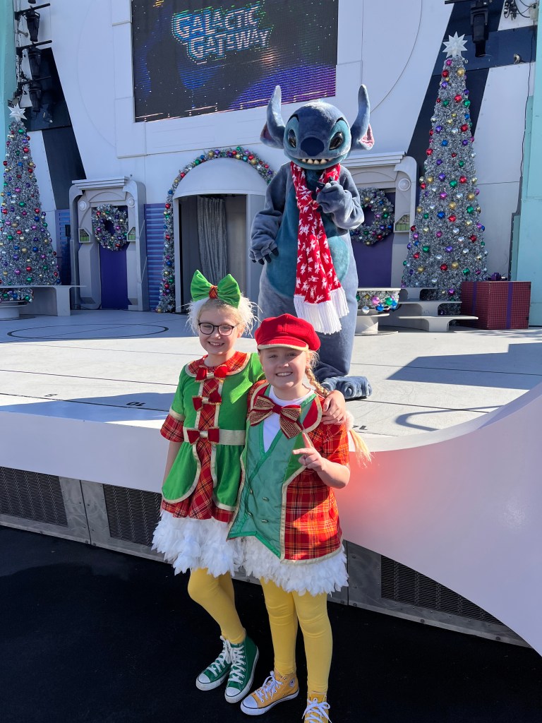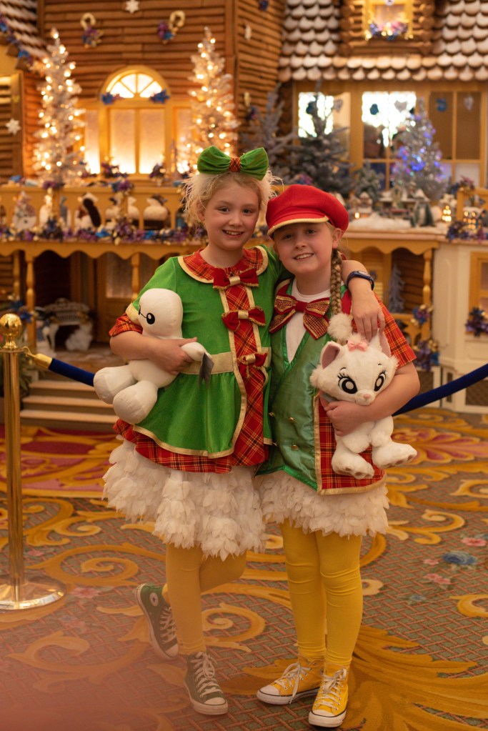The Christmas parade is really lovely, and I love the fact that they put it on in the day time between Christmas and New Year. The girls were so excited to see Donald and Daisy in their Christmas outfits, but as they do a dance routine with other characters, knew they likely wouldn’t be able to come over. As they approached one of the CMs who was on crowd control went over to them to point the girls out so they spent the whole dance gesturing to them and blowing kisses which they loved. As they moved past, still dancing, Pooh came and gave them a hug (Polly said it was because he knew Donald and Daisy couldn’t hug them and wanted to make them feel happy!) but then Dick-Burt (our name for Burt from Mary Poppins used because a special person who is no longer with us used to call him that) went up to Donald & Daisy and told them basically to run back to the girls, so they held hands, ran to them, gave them the biggest hugs, then ran back to to join the parade. It was the best moment ever as it was so unexpected. It honestly put the biggest smile on the girls’ faces all day (and made them immediately decide that they didn’t want to watch the 3pm parade as it would never live up to that!)