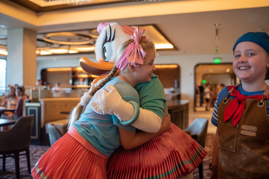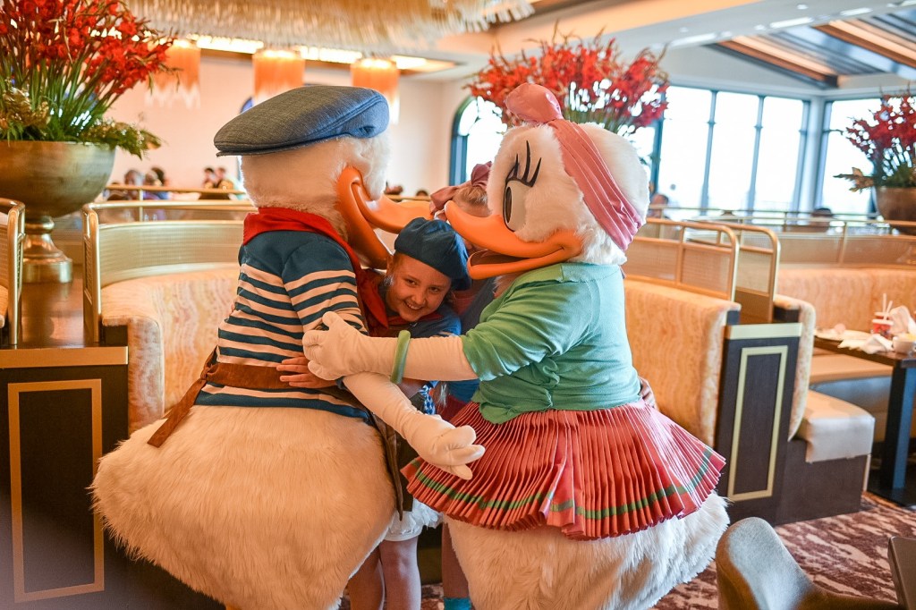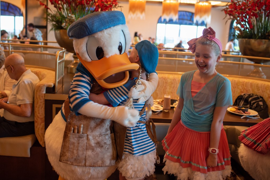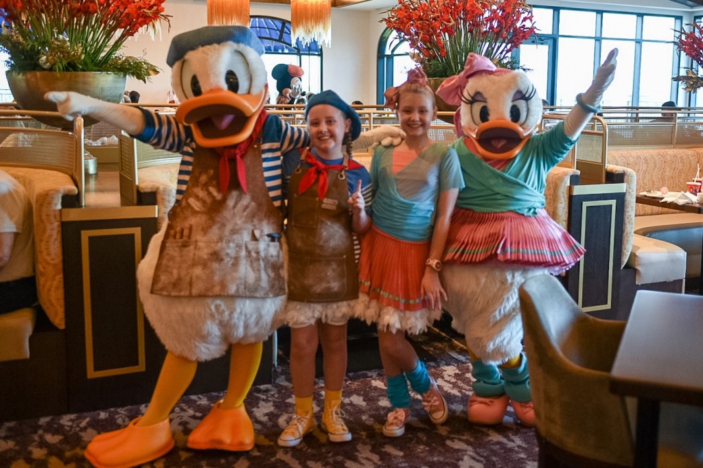 I had to wake the girls up, but we were quickly dressed and ready to go. We have always had great experiences at Topolino’s. Whilst you may get more food at buffets, we’ve never left hungry (and we have huge appetites!) and the food and service has always been perfect. Today was no different. We had the cheeriest server ever, whose smile was completely infectious. He was really clear with what we could order (2 dishes each, one of which would be a slightly smaller version served as a side) and always around to check everything was ok. The characters were great with Donald being on especially good form and doing his best to wind the other characters up! Winnie thought he was hilarious.