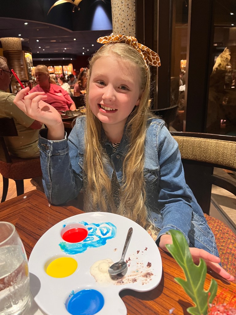 We then spent a few hours at the pool resting, before heading in to get ready for our meal at Jiko. Jiko is the girls’ absolute favourite and it was really nice to sit down and have a relaxed meal, although I was still pretty full from Topolino’s! The food was absolutely amazing and we couldn’t have asked for a nicer way to end the day. We did debate heading to Epcot, but instead bought a gingeraffe from the lobby and headed up to bed to watch Frozen!