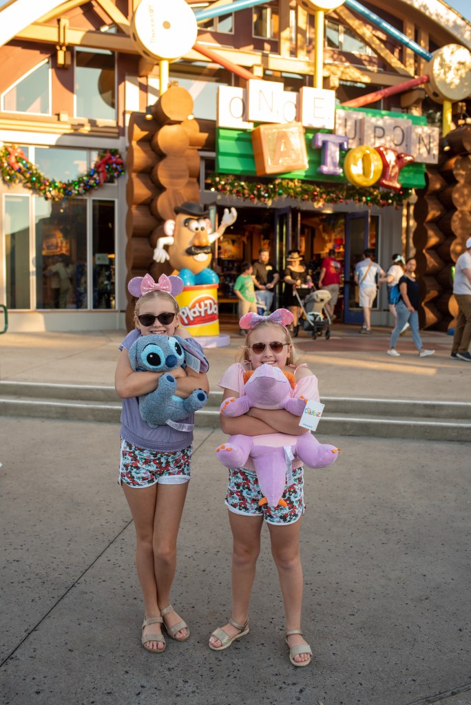 Polly had been eyeing up a weighted Stitch (we’ll definitely be getting a TSA search note in that suitcase!!) and Winnie a Figment cushion toy thing, so they used the last of their Christmas money to buy those.