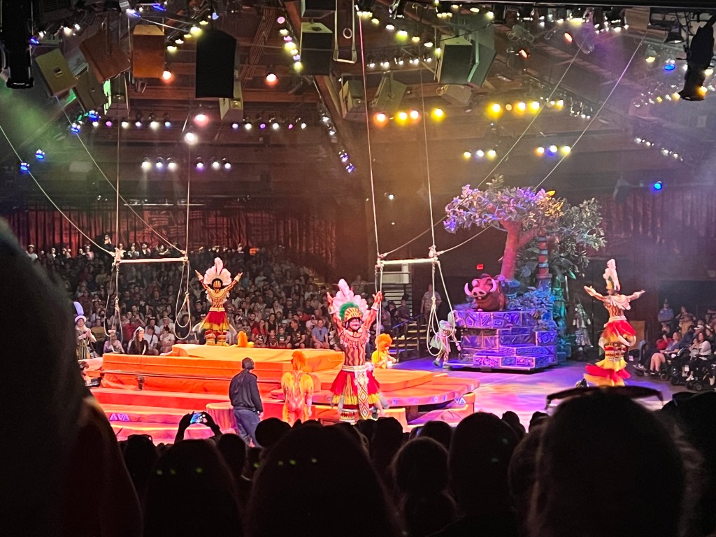 The Festival of the Lion King was just about to start so the girls and I left to try and get in while Steve paid the bill. We just managed to squeeze in. I love this show so much and it never disappoints. Polly’s favourite bit is the birds dancing, and I love watching her face during it.