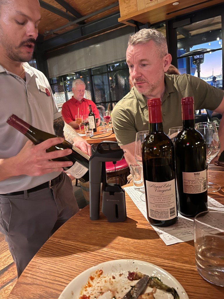 The sommelier then bought them over and talked about them in depth before using a fancy gadget to inject and remove the wine from the bottle without taking the cork out. It was really interesting (even did someone who doesn’t like wine) and Steve really enjoyed it. Definitely a great thing to try if you like your wine.