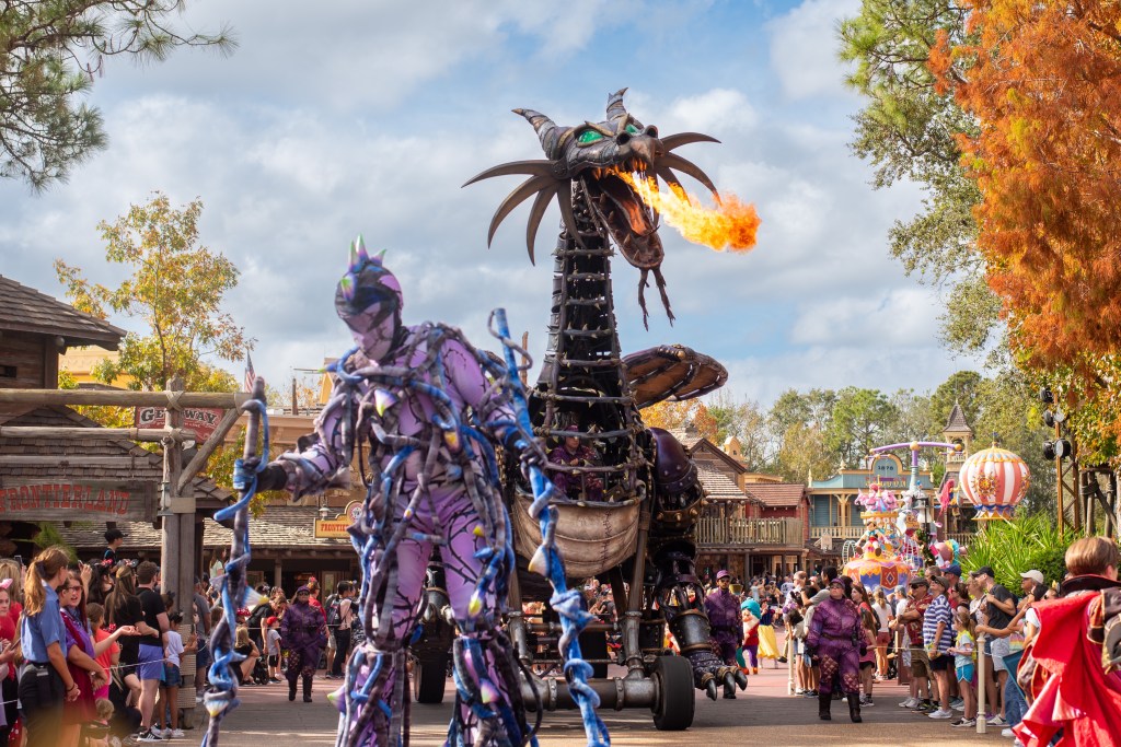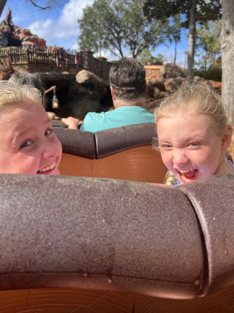 We quickly met Mickey at Town Square and then planned to head back to the hotel, but Polly was hungry and really wanted to do Splash Mountain which was currently down, so we decided to grab a quick bite from Cosmic Rays (2 kids quick service meals) then see if it was back up. It wasn’t, but it was almost time for the Festival of Fantasy parade, so we headed towards Frontierland and found a shady spot to watch in the hope that by the time it finished Splash Mountain would be back open.