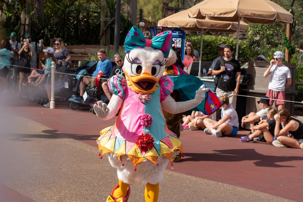 It worked perfectly. The parade was great, a lot of the characters came over to the girls including Wendy, who chatted with them about how she’d loved their Christmas Donald and Daisy and their Belle & Beast outfits, which Winnie was go smacked about. Donald was cheering at Winnie when he passed and Daisy came over to give Polly the longest hug. I still miss the big groups of dancers, but really enjoyed watching it all the same.