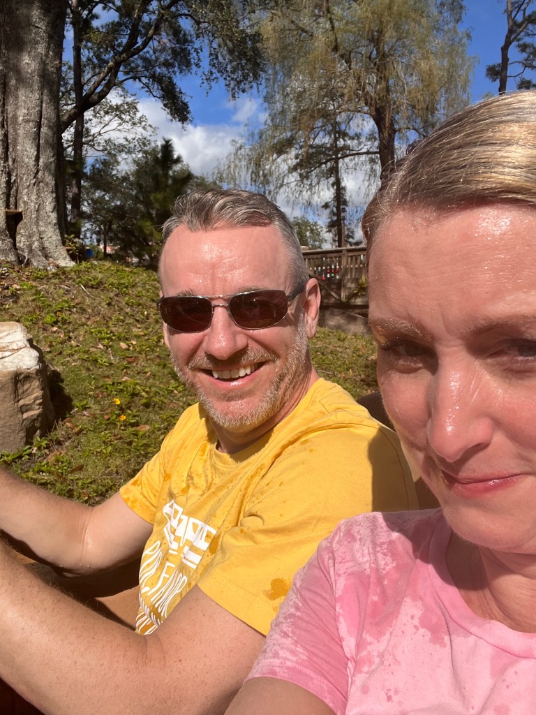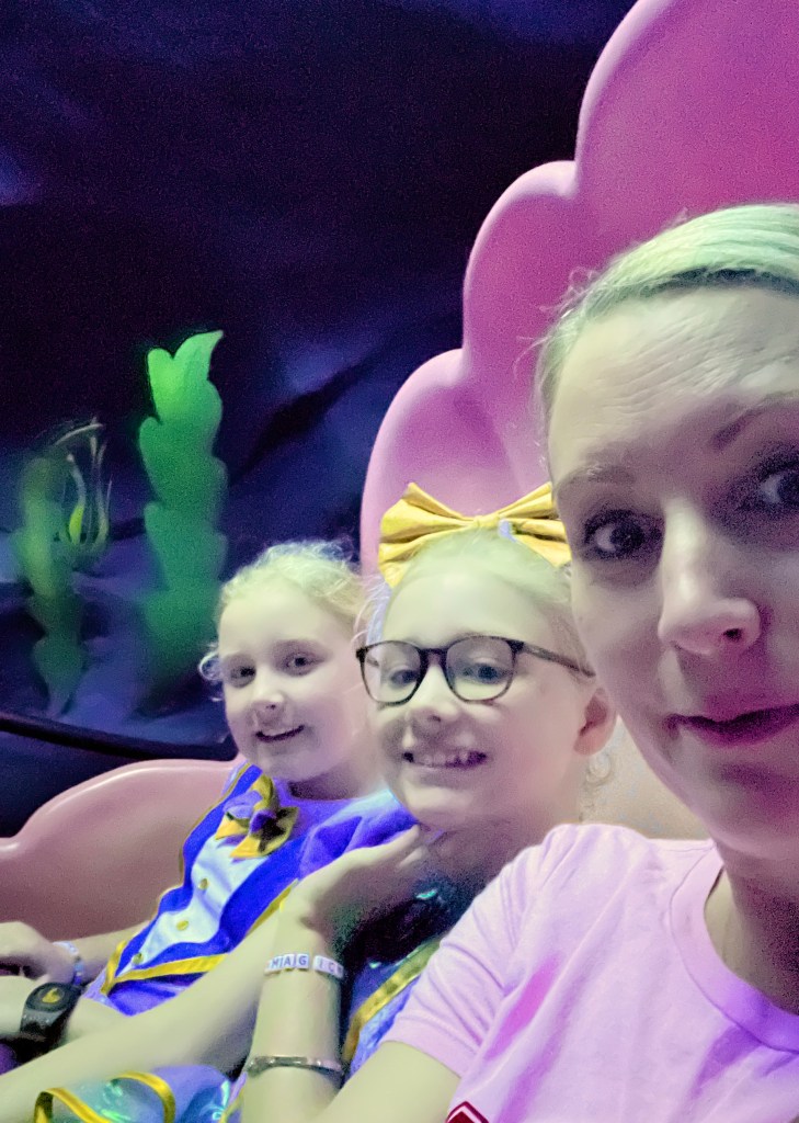 We then jumped on Splash, which had reopened, ahead of the crowd who were watching the parade further down the route. I always forget how long this ride is, but we all enjoyed it for quite possibly the last time before the re theme. We then headed out of the park for the bus back. Winnie proved she’s definitely my daughter by speed walking past anyone going remotely slowly as, in her words, ‘if you’re moving, you might as well move quickly!’ It made me remember when she was tiny how one of her first phrases was ‘oh come on!’ when we came behind a slow car after she’d heard me say it so many times! The bus came about 5 minutes after getting to the bus stop so we hopped on and headed back for an hour around the pool (I did plan on packing but decided it could wait!)