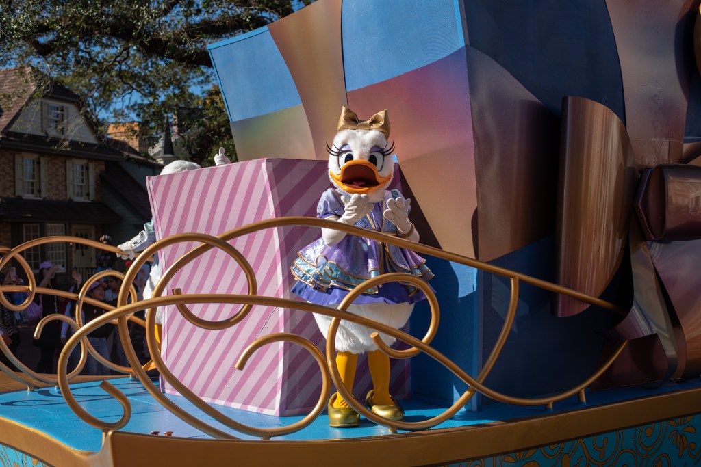 We were going to go on Astro Orbiter but it had gone down so we saw Stitch and then headed towards Haunted Mansion. However, the girls suddenly decided they wanted to watch Festival of Fantasy so we stood in our regular shaded spot outside the Christmas Shoppe and waited a short while for it to arrive.