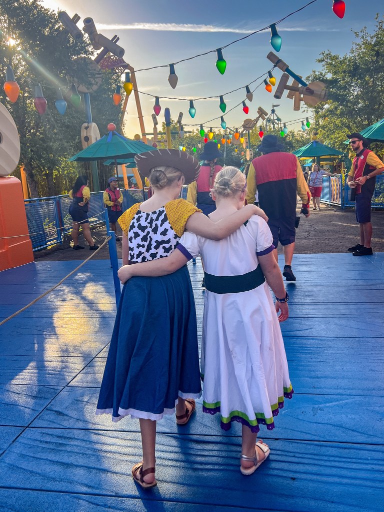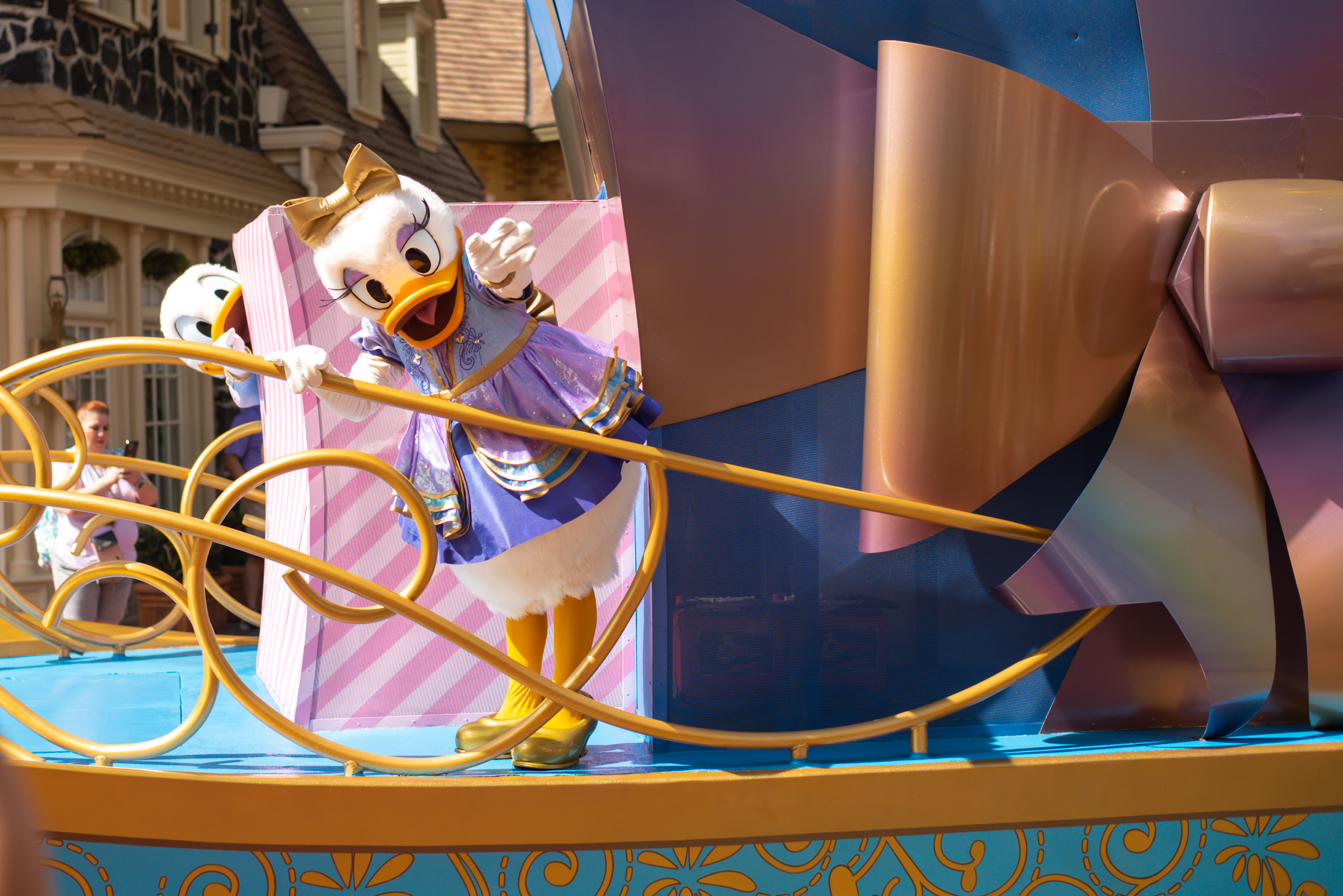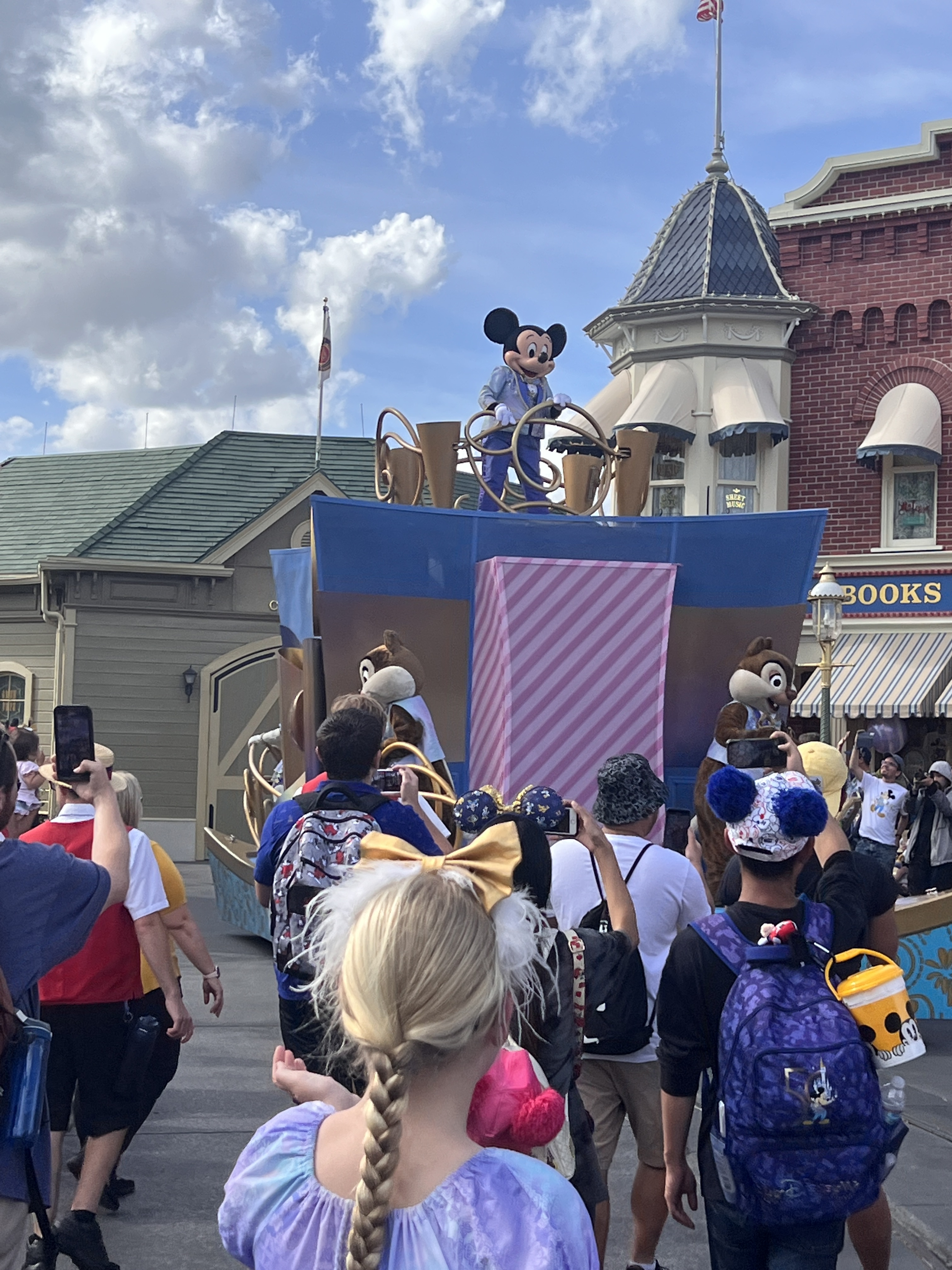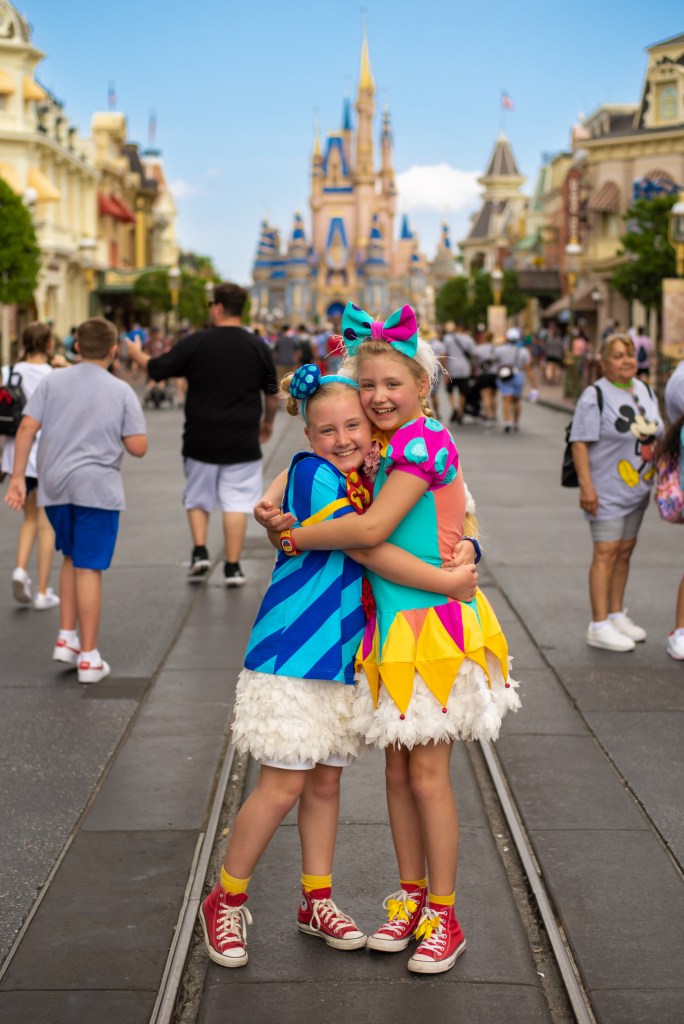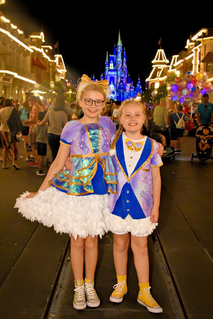 We then had a quick change of tops and headed to Magic Kingdom for the early Festival of Fantasy parade. The girls were hoping that Donald and Daisy would be walking again, and as every float passed the characters/ CMs told them the ducks would want to hug them, so they were very hopeful. Luckily, they both spotted the girls (let’s face it, they’re hard to miss in those outfits!!) and ran over for the biggest hugs. We were crammed in like sardines so no photos as such, but memories to last a lifetime and two very happy girls.