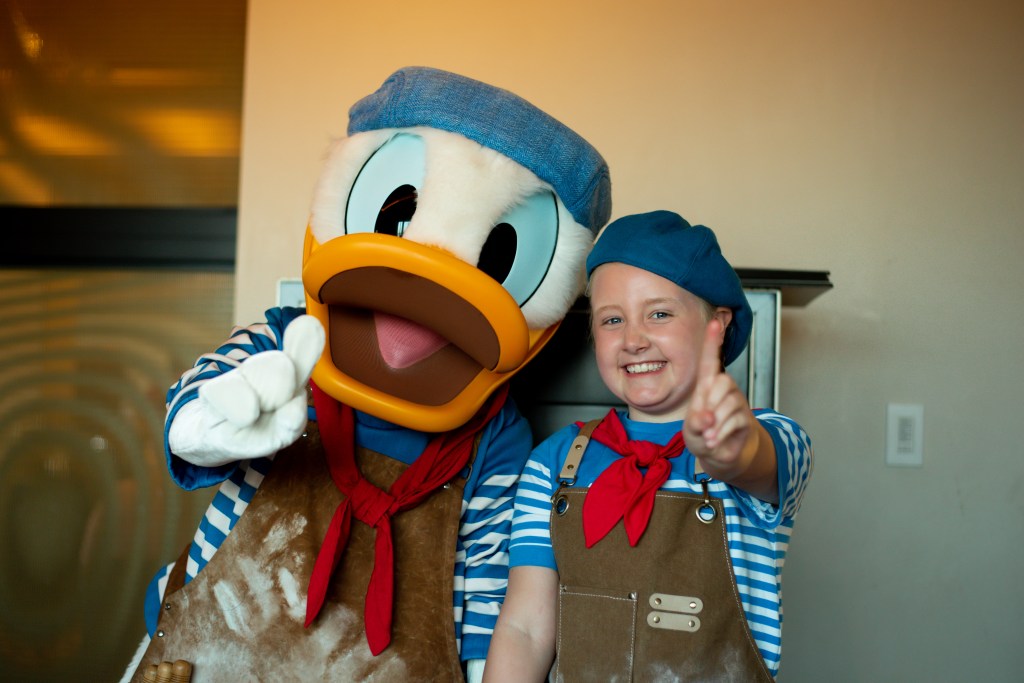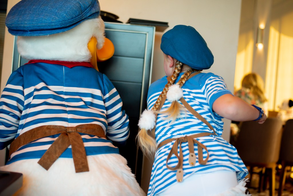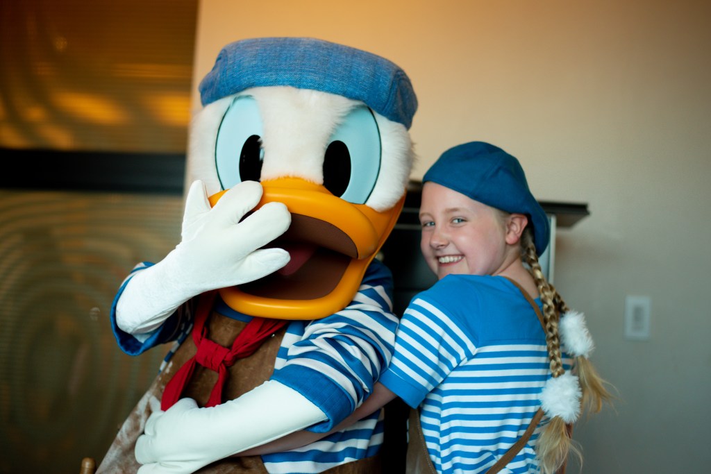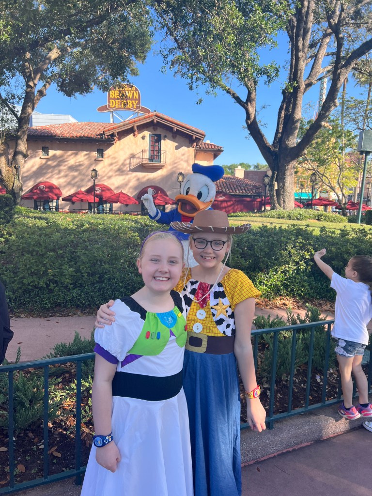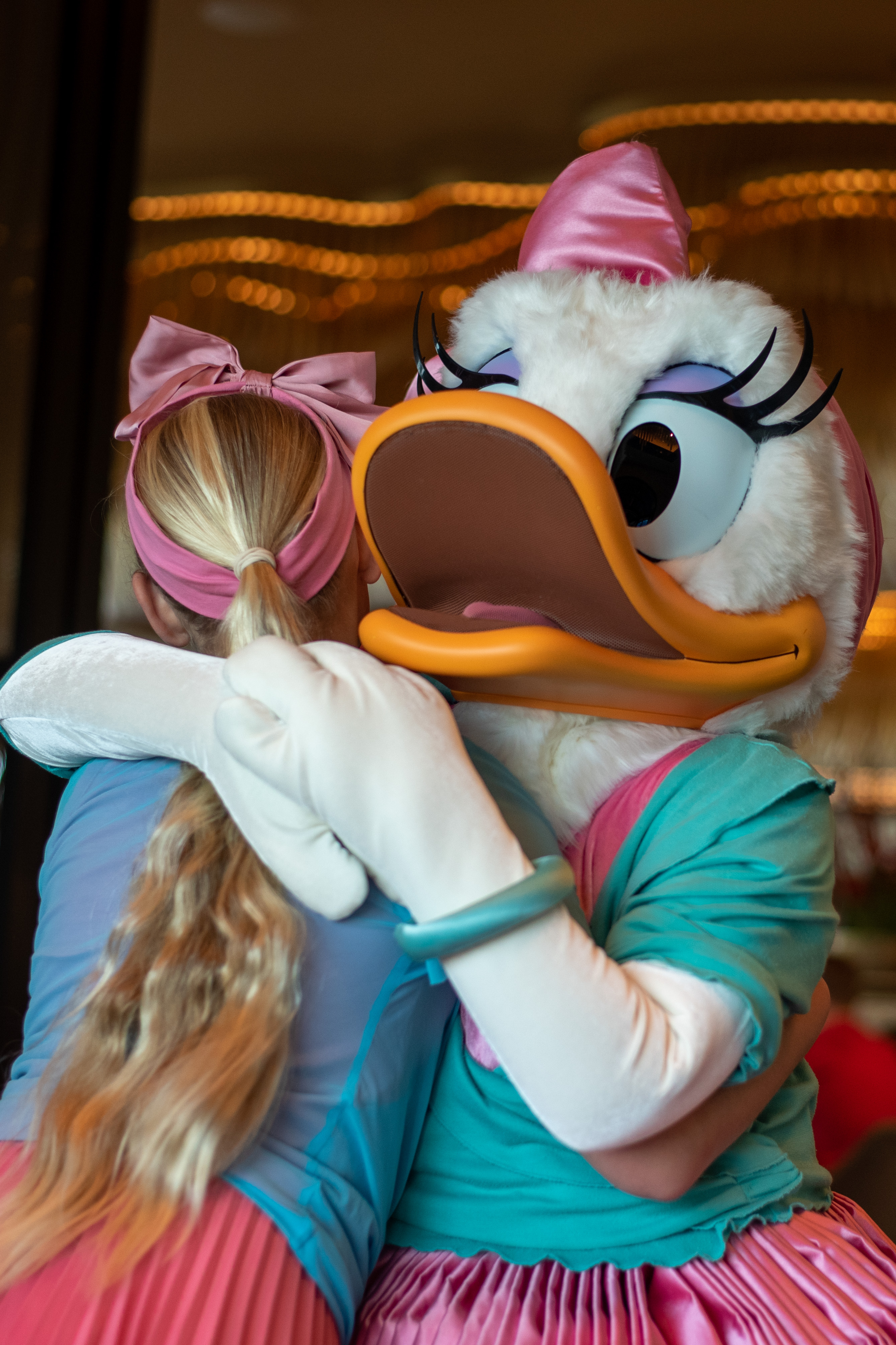 The next morning we decided to try and get a Topolino’s reservation as although we had another Magic Kingdom Day planned, it was mainly to watch Festival of Fantasy again as I’d made the girls outfits to replace their 50th ones (on their request!!) so we had plenty of time beforehand. Loads of reservations popped up in the morning so we had our pick of times. I initially chose 9am but modified as we were ready early, and we ended up being seated at 8.30am. We had the best time. We were in a little side room, but it was great as the characters spent ages with us. Donald took Winnie away to make everyone in the main dining room cheer for her and wouldn’t bring her back until they cheered loudly enough! He then directed her to do various poses for photos. She absolutely loved it.