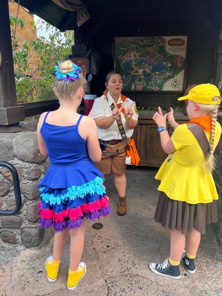 Anyway, a hasty exit later and we were on the bus to French Quarter. As the hotel isn’t far from the park buses are really regular so we’ve never had to wait as yet. A half hour cool down (it’s so hot!) and we were back on a bus to Animal Kingdom. We had no real plans other than Nomad Lounge for tea (I genuinely think the poke bowls are my favourite Disney meal) but we ended up doing Flight of Passage, the safari and the Nemo show too, which was great. We also saw Kevin as soon as we entered the park which was perfect timing, and the girls started new Wilderness Explorer books (hopefully these will take less than the 3 years they took to complete the last ones!!)