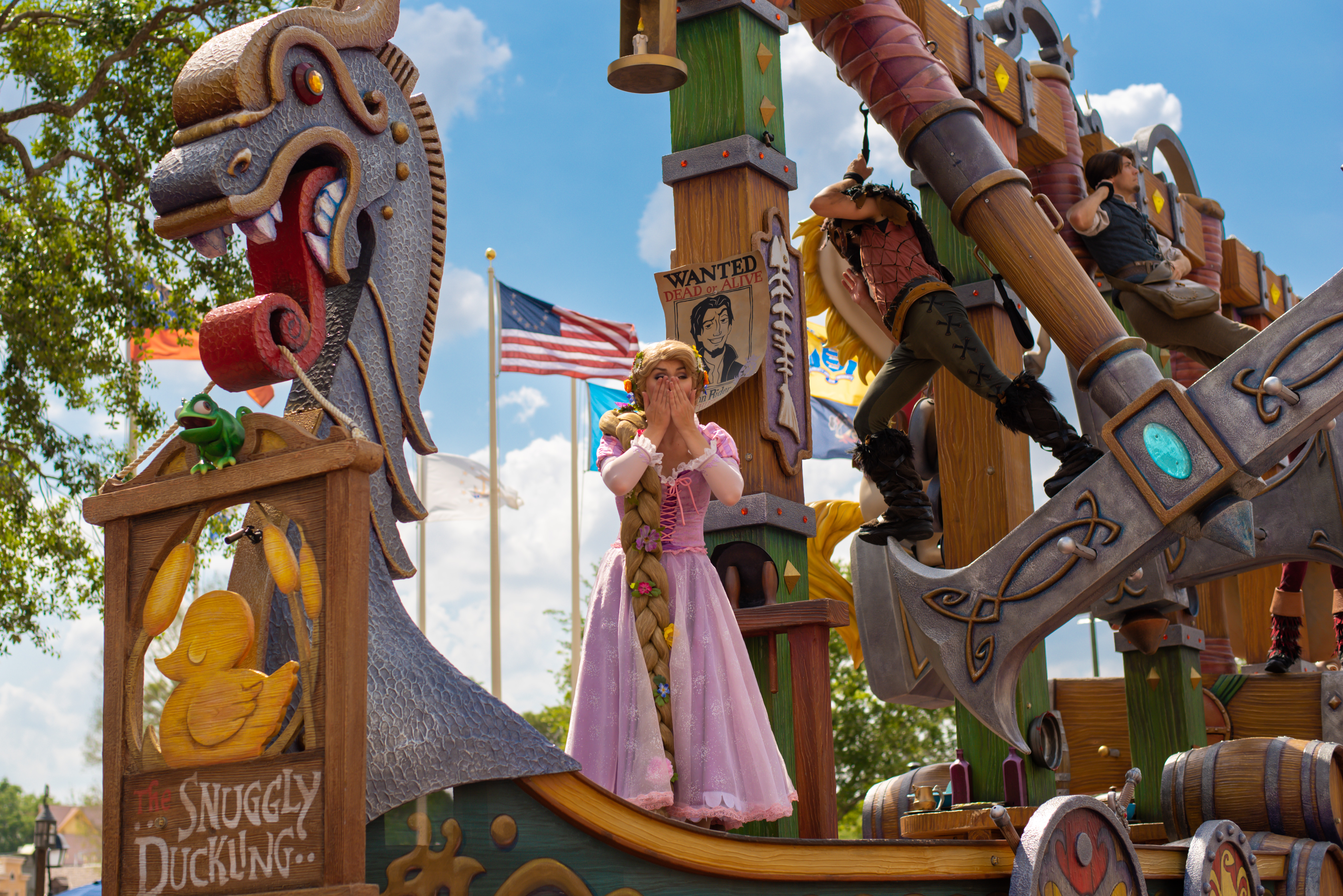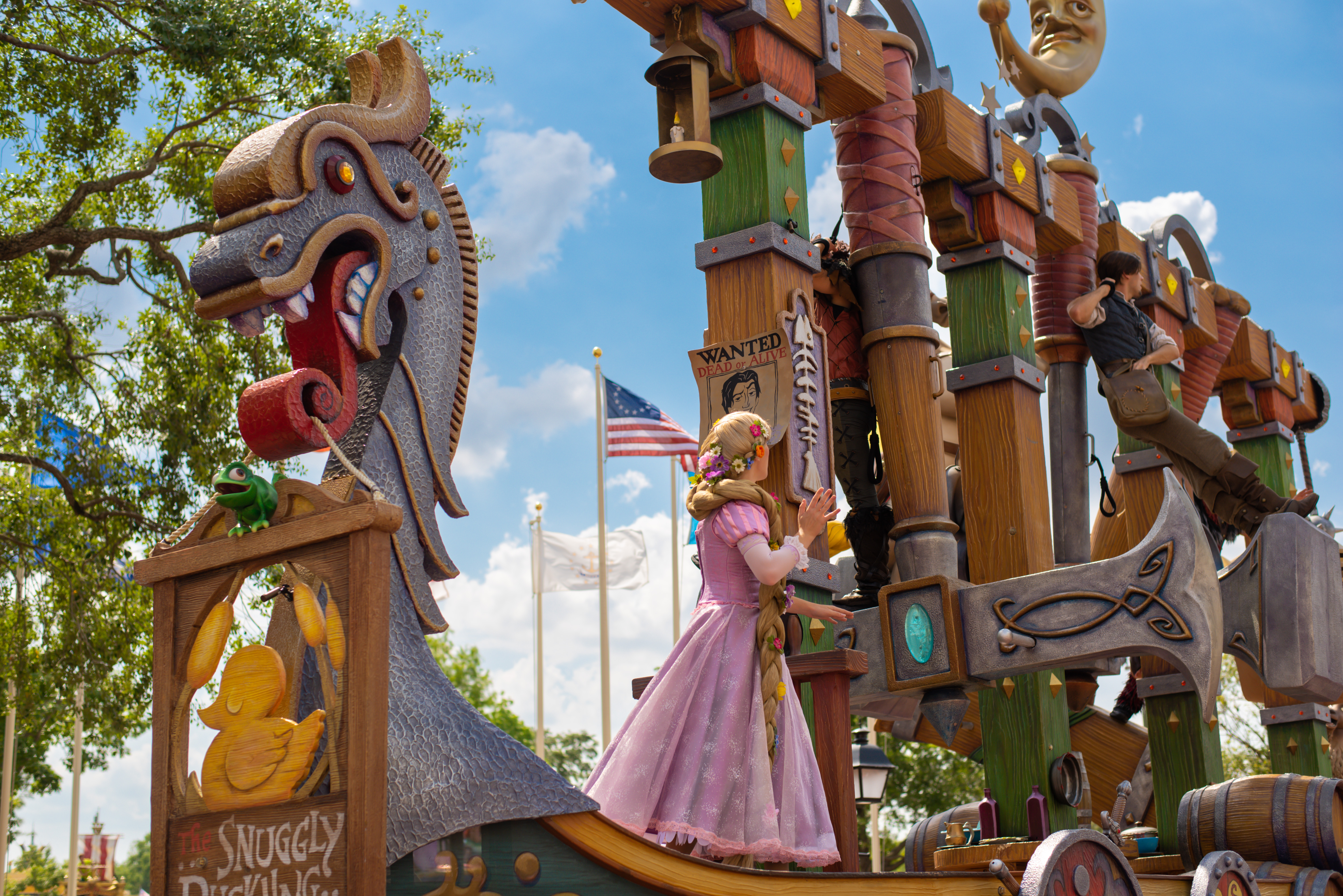 Winnie really wanted to see Flynn in the parade which meant we had to stand on the unshaded side of the route. We opted for the area in front of Hall of Presidents as there was a slight draft from the air con, but it was absolutely baking. Still, it was worth it as Rapunzel and Flynn were really excited to see them, Wendy remembered them as her duck friends and Donald even came over to say hello again.