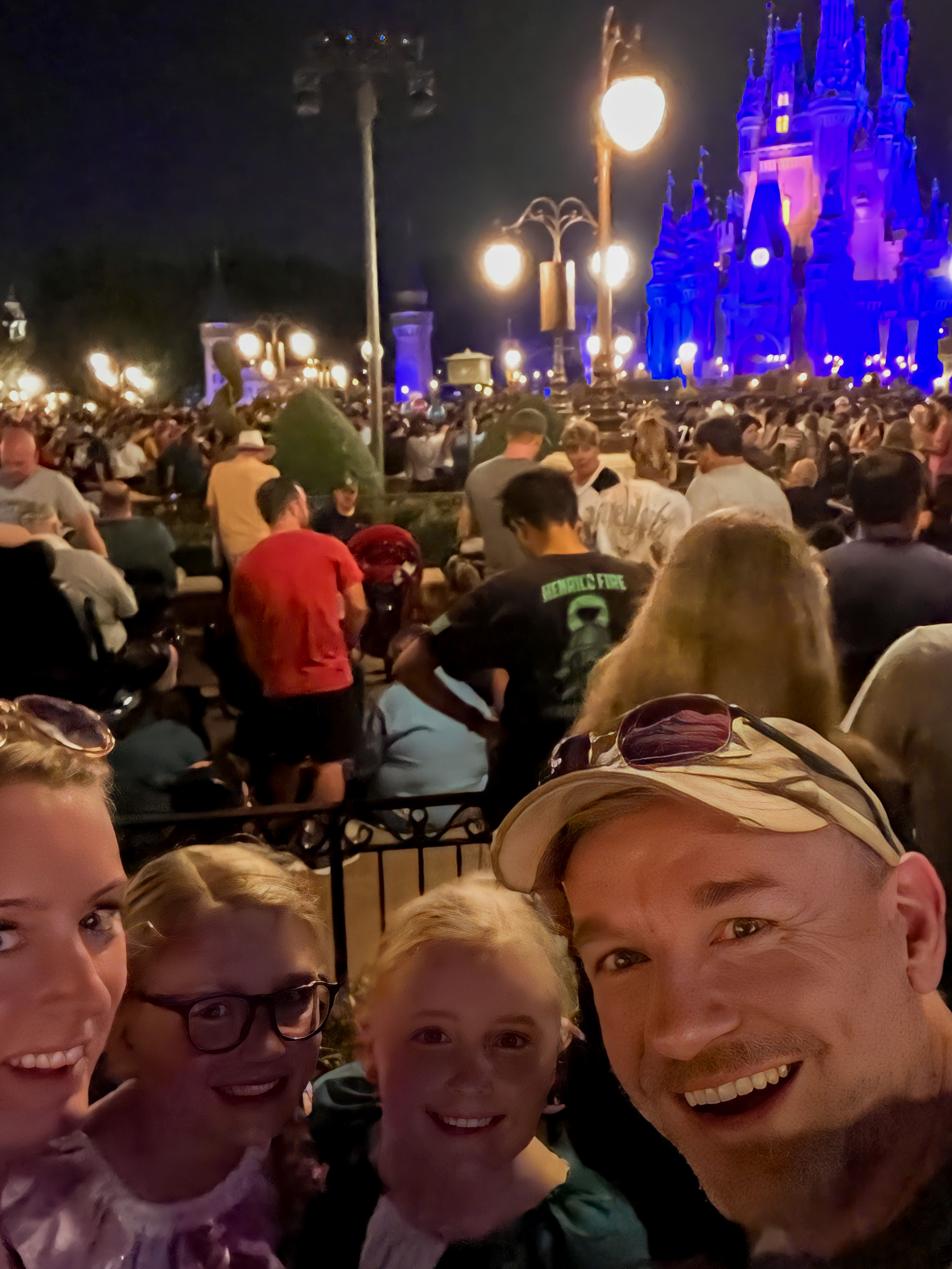We went to ride Buzz before deciding to get in line for the party as a queue was already forming. The cast members were really efficient though, handing out wristbands whilst we were in line, and they let us into the party around 7. I’ve said it before and I’ll say it again, the food is definitely not worth the money you pay for the party, but for a special occasion such as this, knowing you’ll have a space where you won’t be squashed like sardines can make it worthwhile. The girls and I ate a bit and much non-alcoholic apple cider was consumed before we decided to head down and get a spot. Steve stayed for some peace and quiet (and much red wine!) and joined us a bit later.