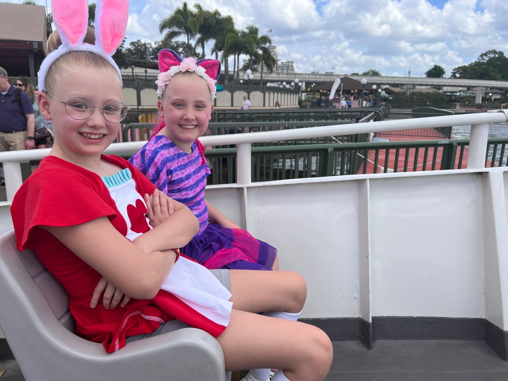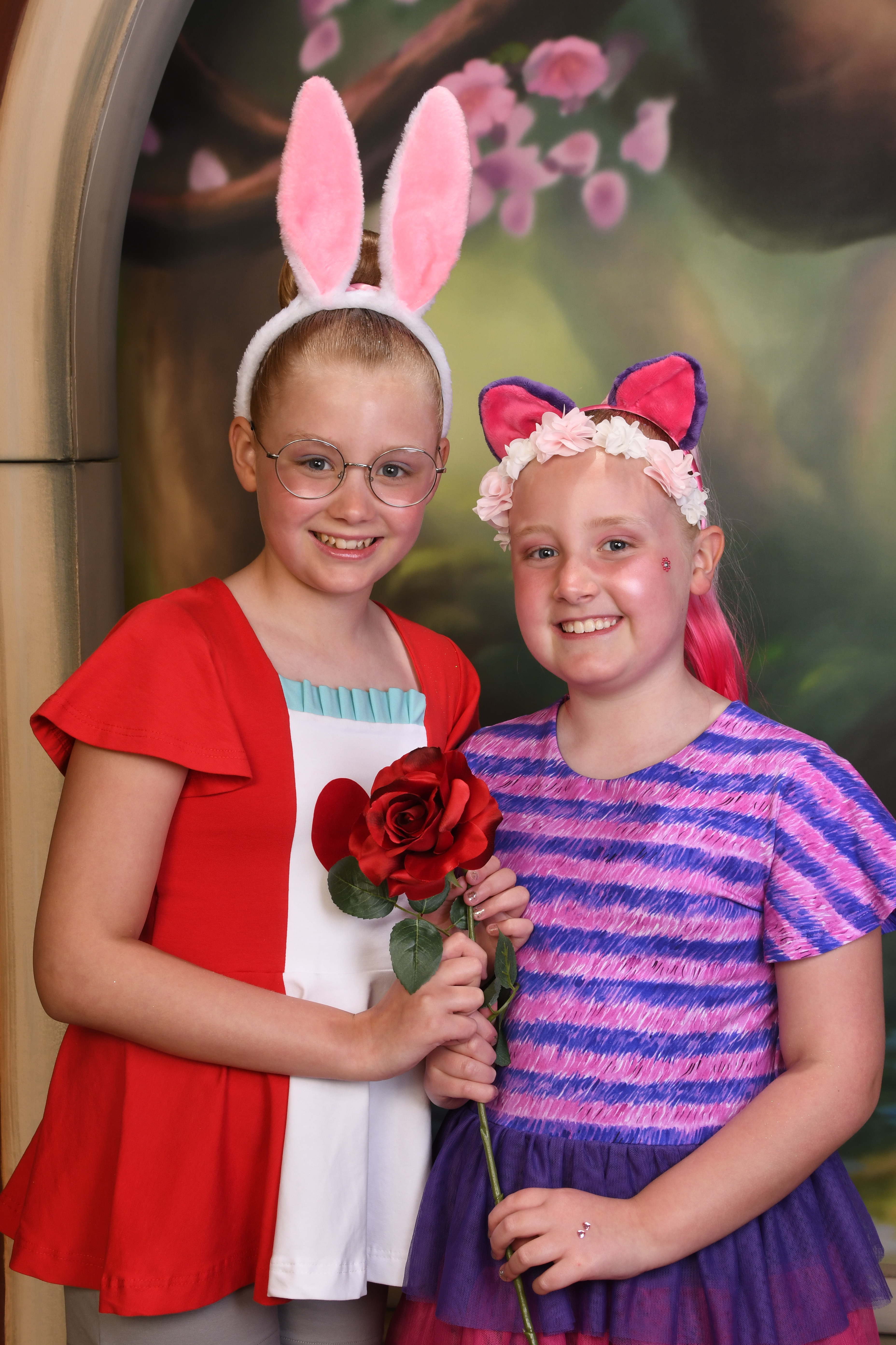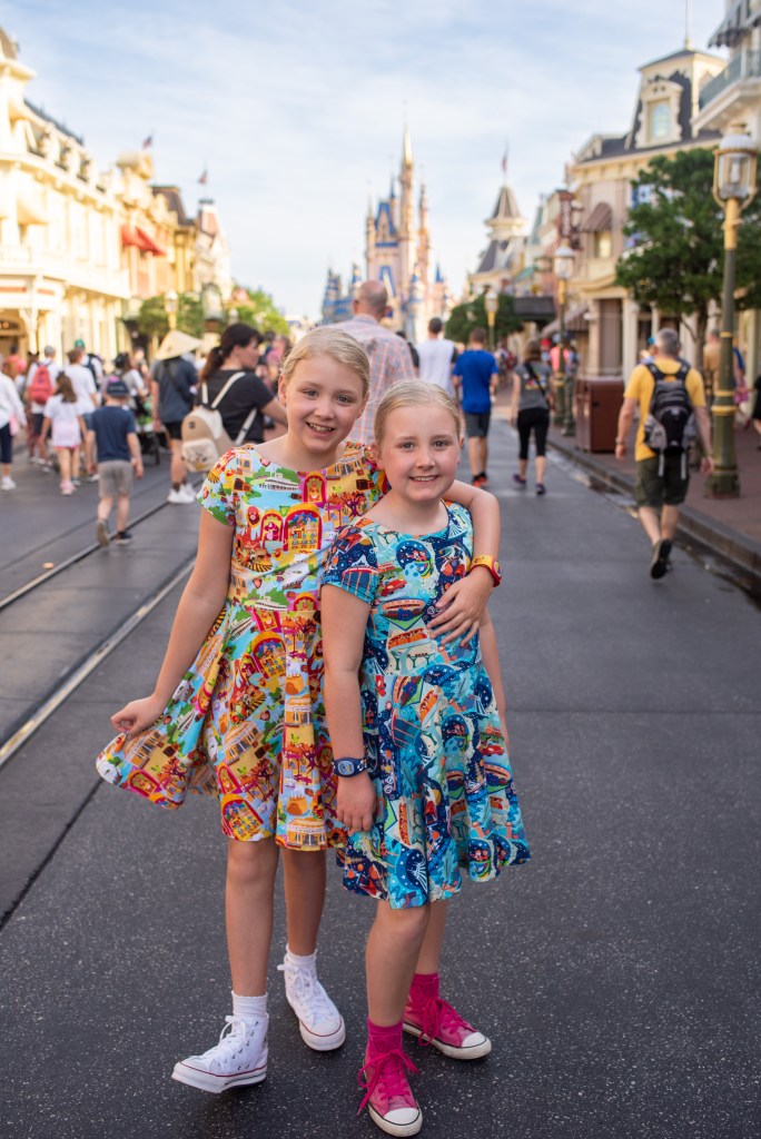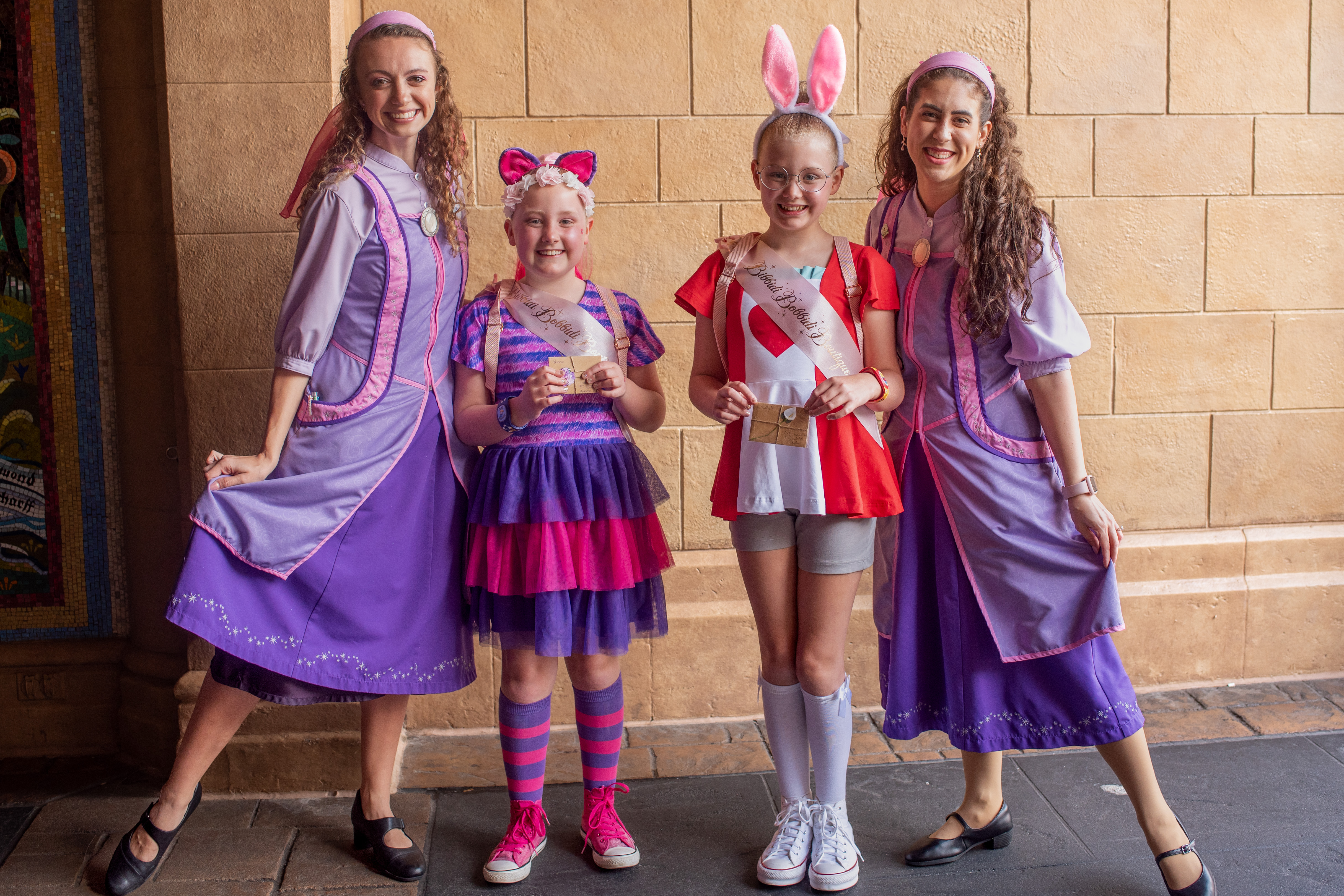 After stating categorically that this was going to be a budget trip and that there would be no extras, I decided I couldn’t miss out the chance to see our lovely Fairy Godmothers at the Bibbidi Bobbidi Boutique, and today was the day of their appointment. We had planned on a Cheshire Cat outfit for Winnie the year Covid hit, so had all the fabric stashed away. Polly was originally going to be the Mad Hatter, but as I’d already made her that outfit once when she was little, she decided on the White Rabbit instead. I never assume the girls will want to dress up, and always leave it to them to let me know if they’d like something making, but they loved designing these themselves so I knew they’d be a winner.