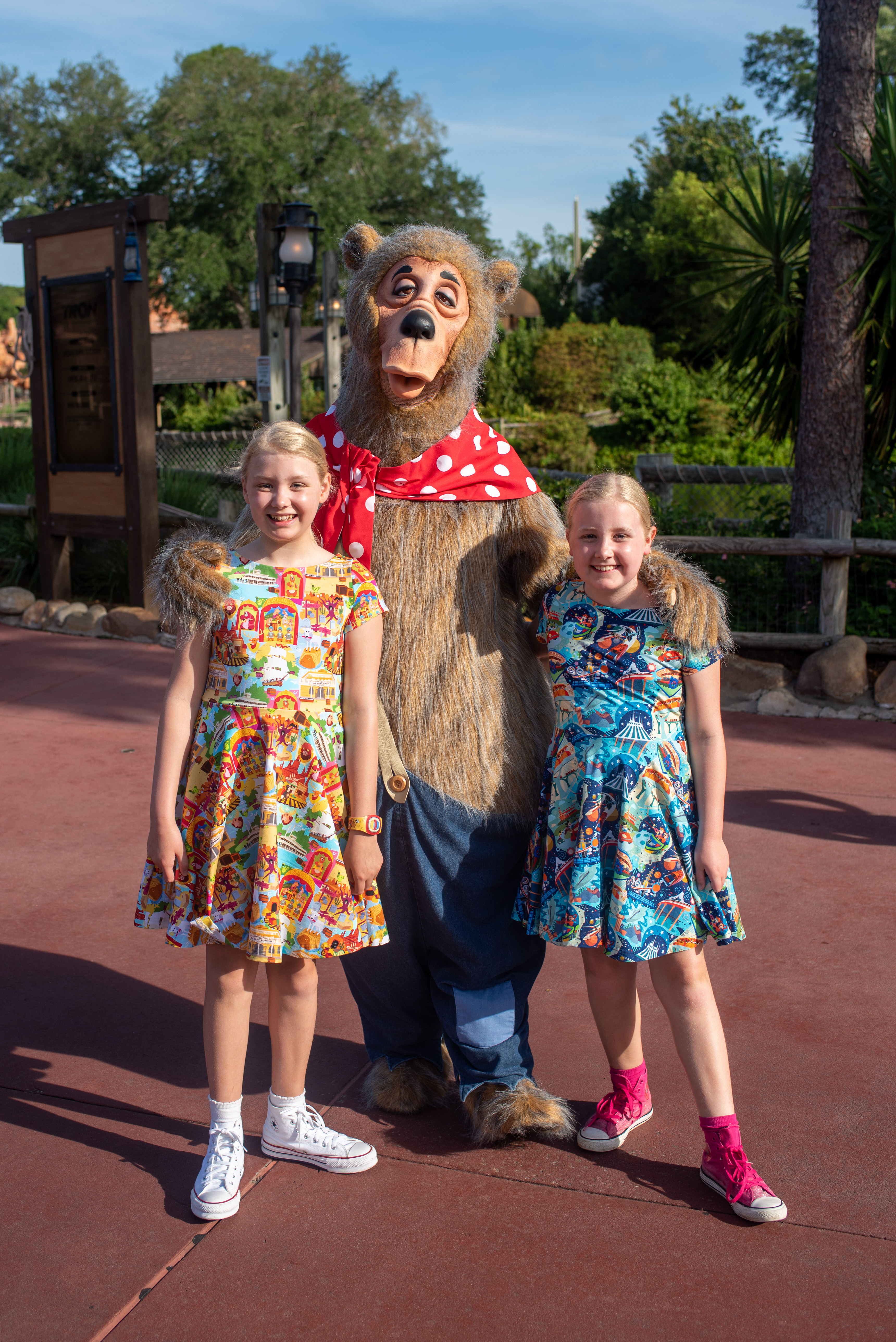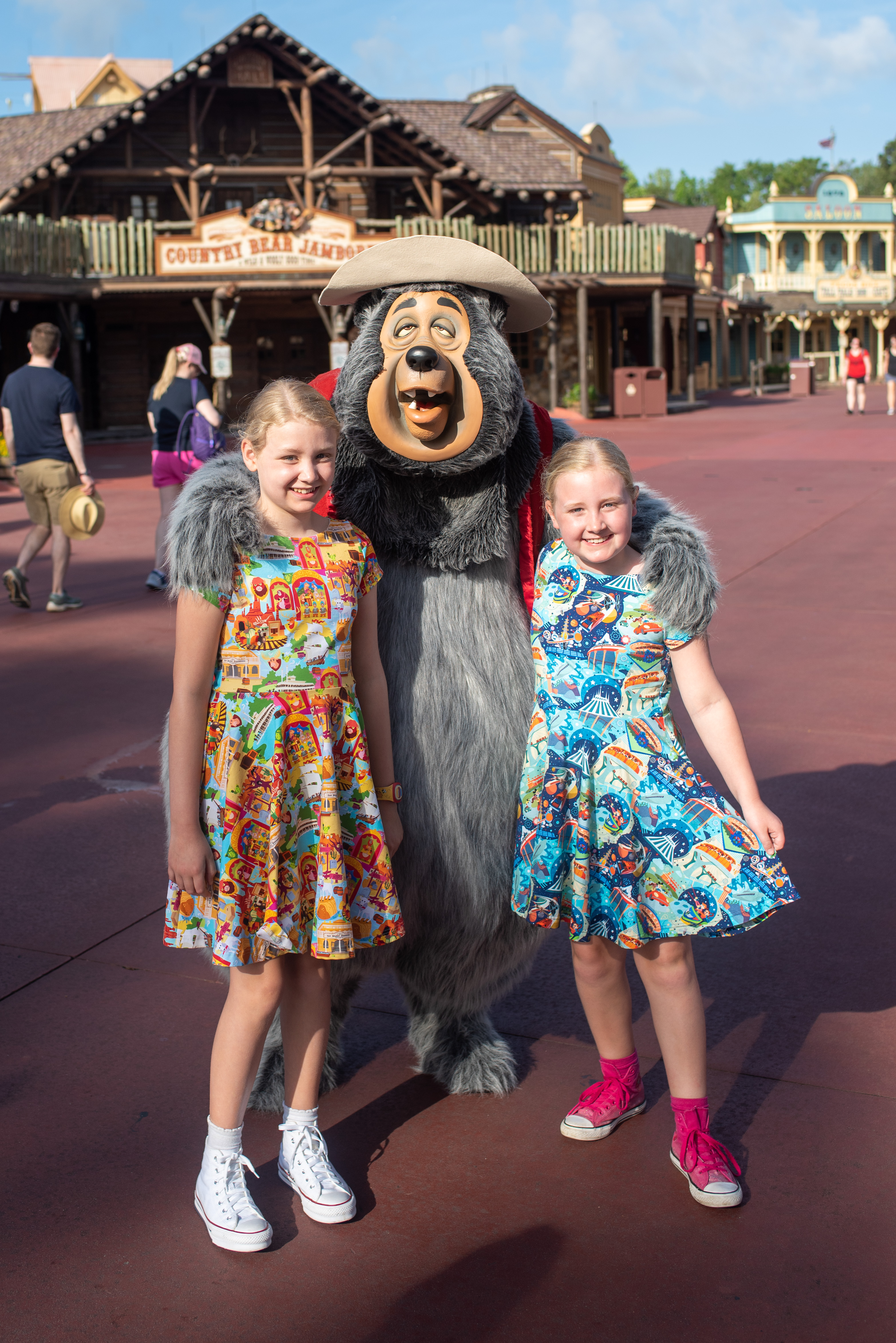 We did meet the Country Bears in Frontierland which Polly loved as she was wearing her dress with them on it.