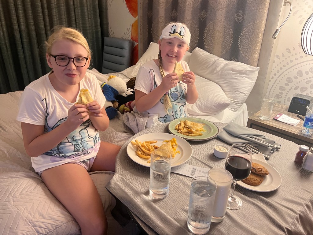 We walked back to the hotel afterwards and the girls got ready for bed (Winnie decided to turn her pyjamas into a Mardi Gras dancers outfit and show us her moves which was simultaneously entertaining and disturbing!) They then decided they were hungry, so we decided to treat them and order a kids chicken quesadilla and cookies and milk from room service which actually turned out to be huge and fed all of us. We then had a small hiccup as we were about to settle down for the night when we realised the pillows were feather (Polly & I are allergic) but Steve managed to sort it.