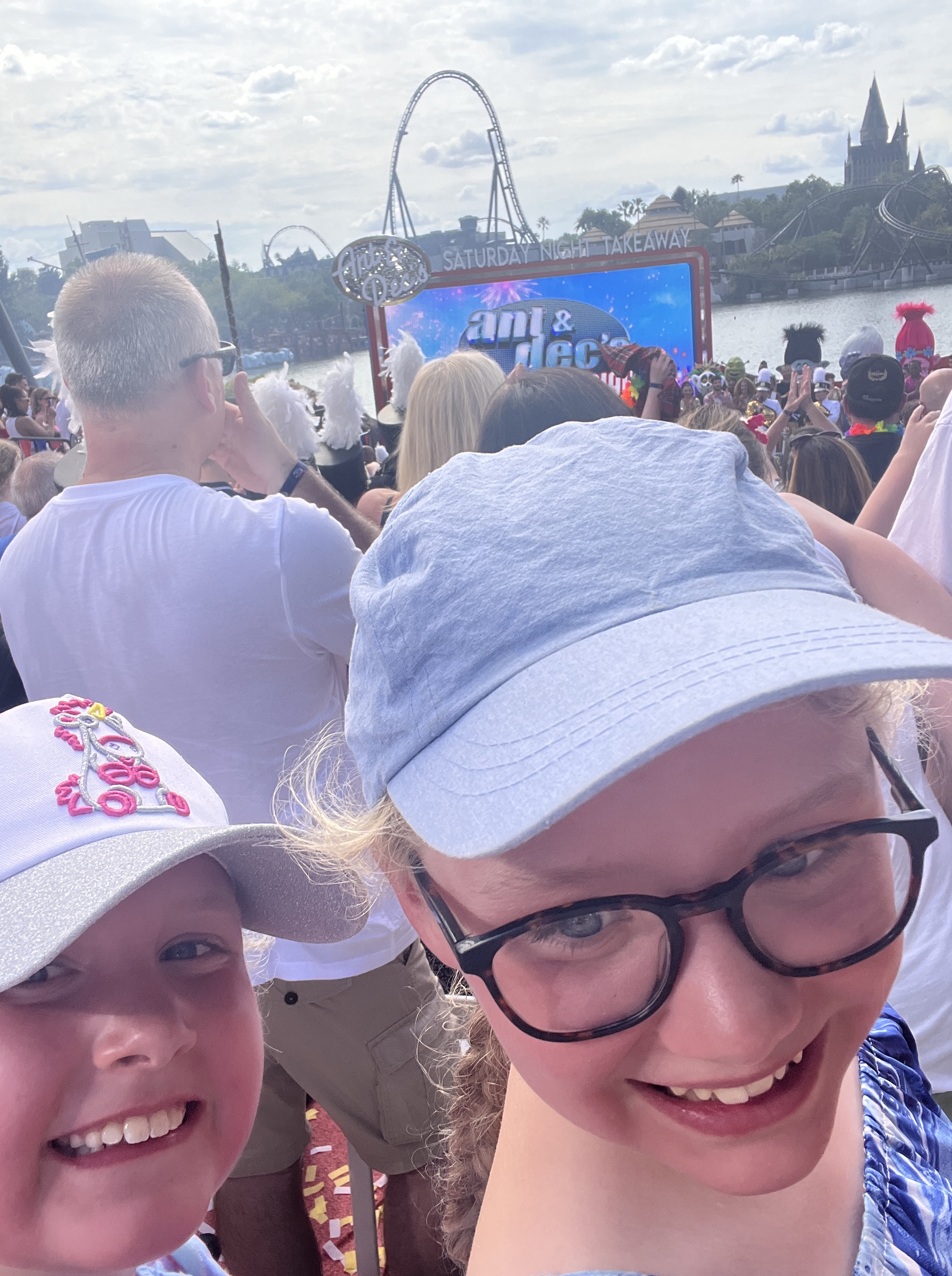 By the time the show finished, and we were allowed to leave at 3.45 we were literally melting, so we headed back to the hotel to get the case and ordered an Uber back to Port Orleans. By 5pm, we were showered, changed and on our way to Epcot because despite the fact that our lovely, cool hotel room was incredibly appealing, I really wanted to watch Starship on the Garden Rocks stage because, as a teenager in the 80s, Mannequin was one of my favourite films!! We got there too late for the first show but too early for the second, so the girls had a few photos taken before we rode Nemo and looked around the aquarium. We then mobile ordered food and took it into the theatre where we watched Starship for their half hour set. We all really enjoyed it although I don’t think I’ve got another clap or cheer in me today now!