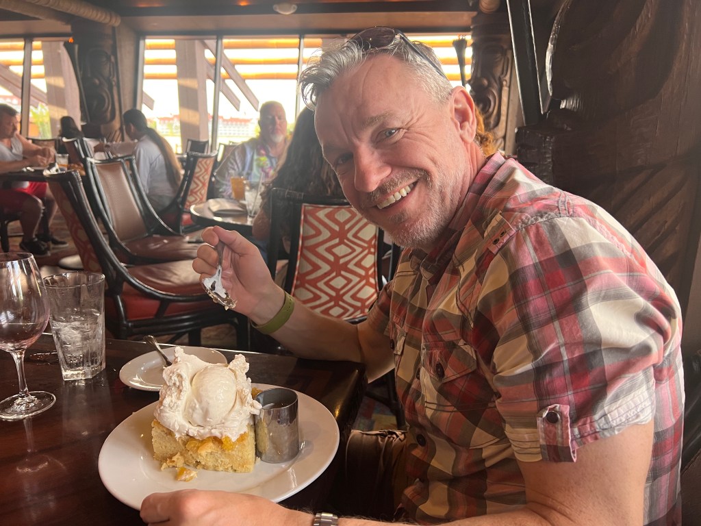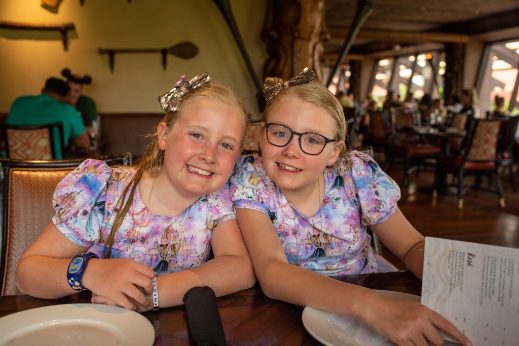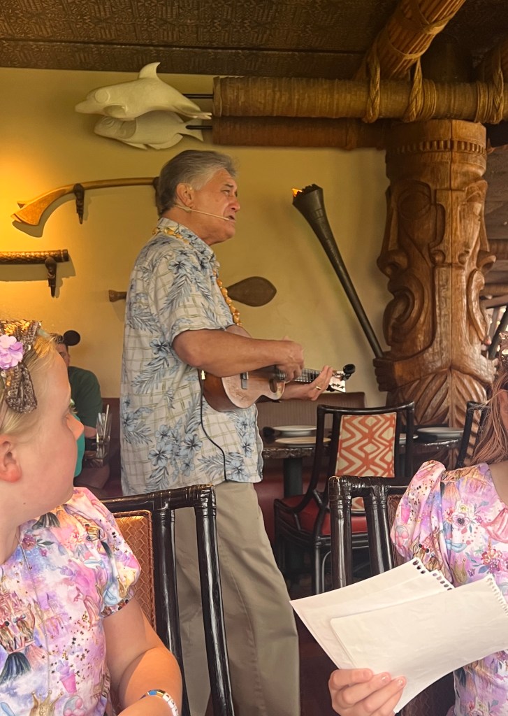 The plan was for us to head to Hollywood Studios mid afternoon to finish the bits we hadn’t done, but as it was the first day, we’d properly relaxed, we decided to switch our O’hana tea that was booked for tomorrow to tonight and stay by the pool a bit longer. I knew that Clare (who’s in the group) was at Wilderness Lodge too, and as our girls loved playing together when we bumped into each other last summer, we managed to meet up at the pool for an hour before we had to leave. They were having so much fun that we ended up staying longer than we should meaning we had 15 minutes to get ready!! It’s a good job it’s acceptable to look a hot mess here! We got to O’hana and amazingly we’re seated straight away. We had a lovely server, and the food was out quickly, but we never felt rushed. Everything was good but while we really enjoy it, I do feel it’s a very expensive meal for what you can actually eat and always leave feeling we could have made better use of the cost of the meal elsewhere.