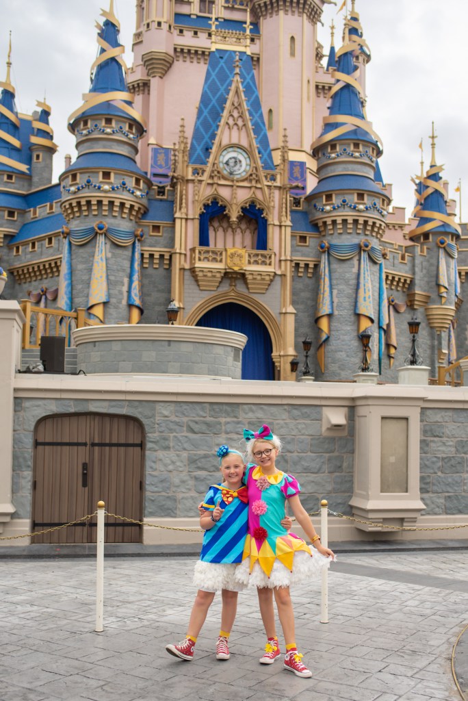 Despite two consecutive late nights the girls got up at 7.15 and we were on our way to the Magic Kingdom by 8am. We opted for the bus as one was due, and we were inside the park gates by 8.15. We rode Mine Train where the girls played ‘Read My Lips’ and giggled the whole way round, and the. headed for the castle to watch the park opening show for the final time this trip. The girls FaceTimed my mum and dad who were looking after their cousins for the day, so they all had a lovely chat before the show started.