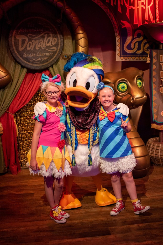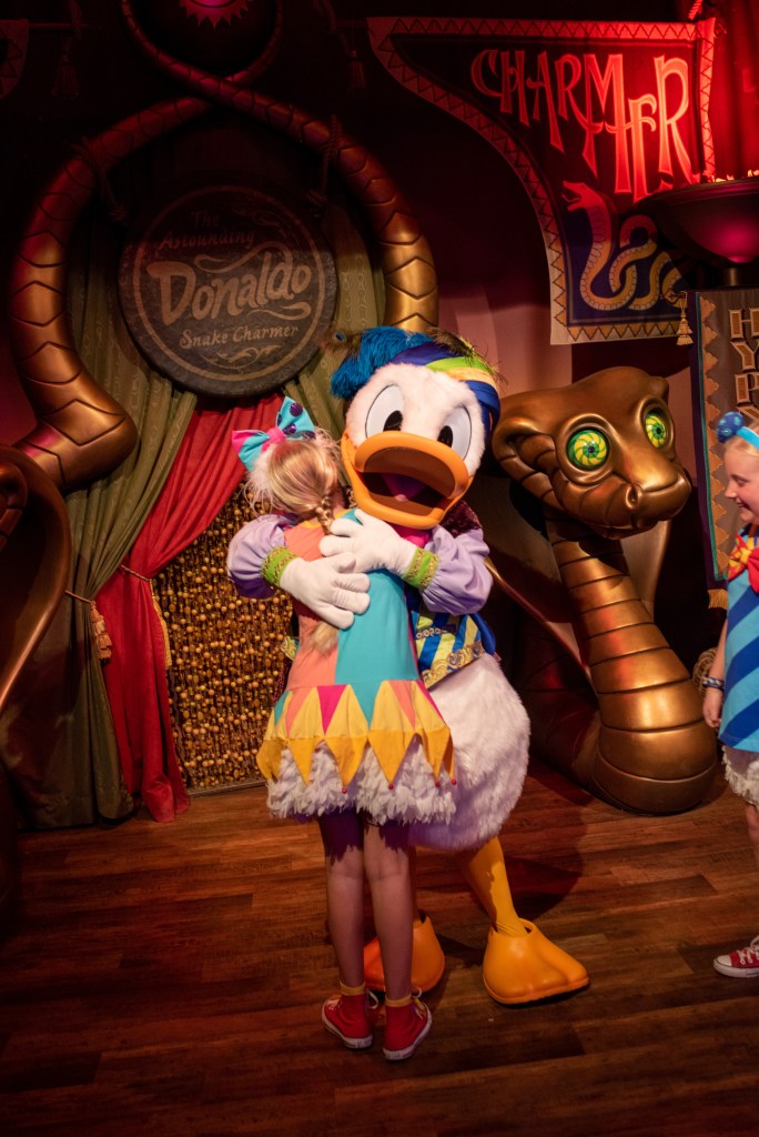 Afterwards we decided to tick the rides we hadn’t done off our list, so we all rode Speedway (I hate that ride!), Little Mermaid and the girls rode Dumbo. We also went to meet Donald & Goofy (Donald was missing from the morning show so the girls decided he’d had a few too many drinks in the Tap House the night before and had an ‘overhang’) and Chip & Dale.