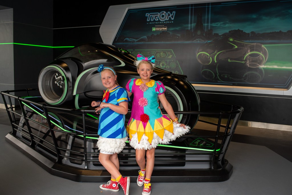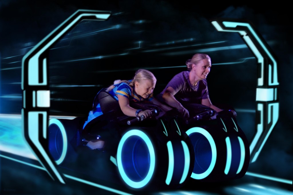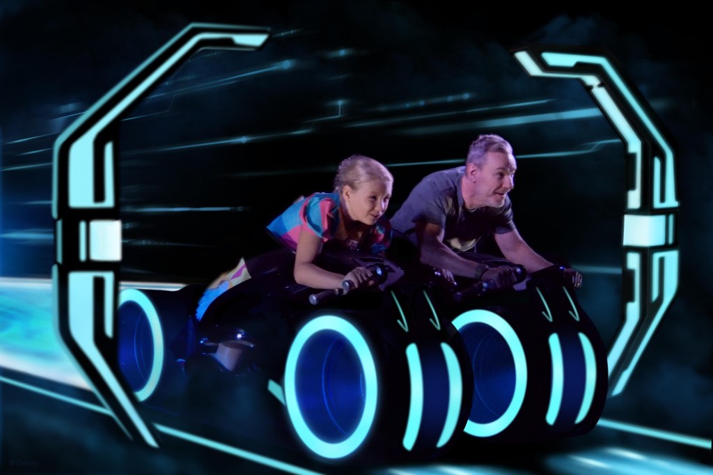 After the parade we headed for Tron (our group was called just before the parade but there was no way the girls were missing it!!) and the queue was so much shorter than the soft opening. It took us less than 25 minutes from entering the queue to getting off the ride, as opposed to over an hour the first time we rode. I still felt a bit sick but nothing that would stop me riding again, and the girls were absolutely fine and loved it (even if Winnie’s face suggests otherwise!!)
