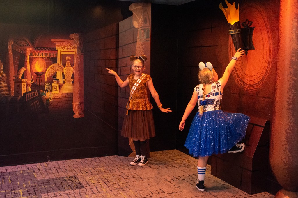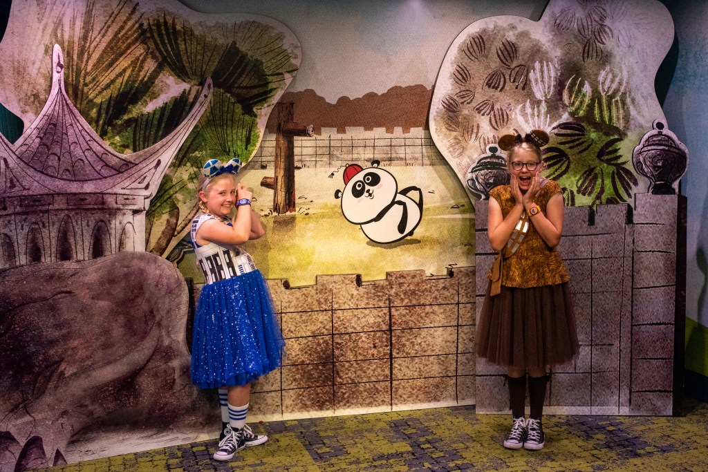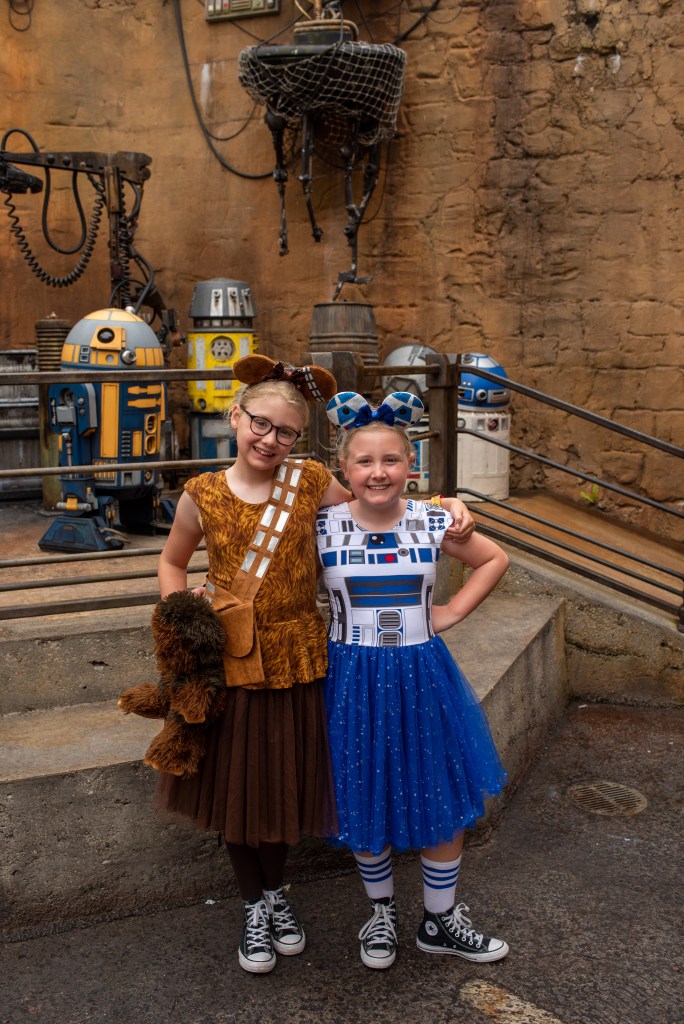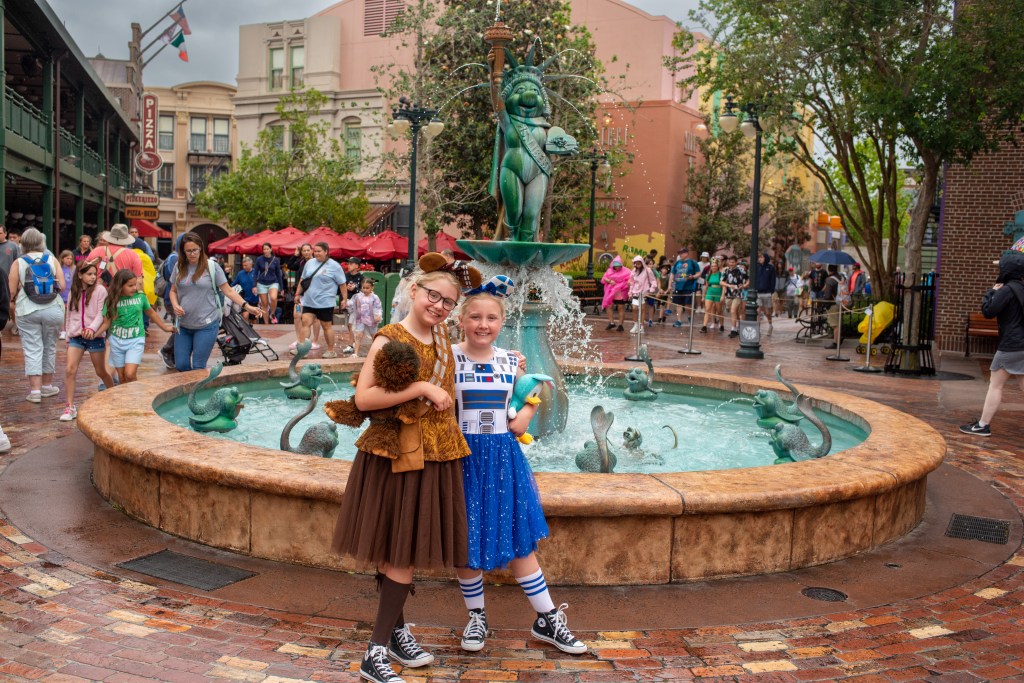 It started to become much windier and rainier, and by the time we got to Studios it was actually quite chilly, so we headed straight into a Frozen show which was just starting. We also watched the Muppets (has to be done) and the Mickey shorts, had a walk around Galaxy’s Edge and rode Toy Story Mania. We had a Sci Fi reservation but had all had enough so decided to cancel it and head back for tea at Geyser Point instead, which we all loved, although for saying Donald is her favourite, Winnie is terrified of the ducks and ducklings that kept walking around!