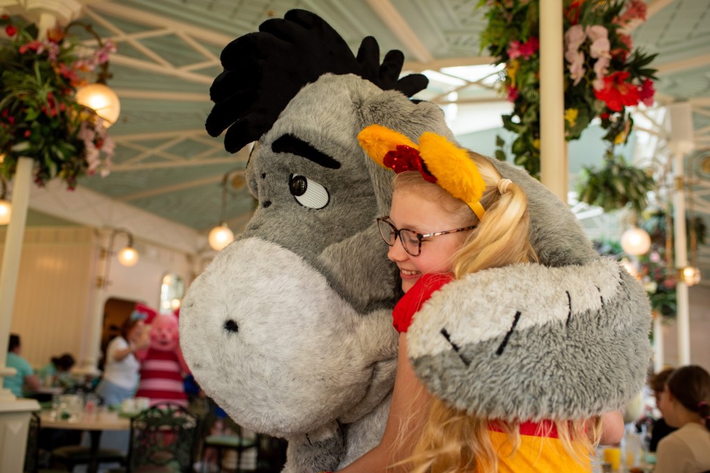 We had our breakfast reservation at 10.15. I chose this time because I knew the food would swap to lunch at 11, and as I’m not a huge breakfast fan it meant we’d all get something we enjoyed. It also meant we paid the breakfast price which was great! We haven’t done Crystal Palace for a lot of years, and I don’t think the food is quite as good now, but it perfectly fine and the characters were great which is the main reason we were there. Polly has loved Pooh since she was a baby, and hugging the characters made for a perfect meal.