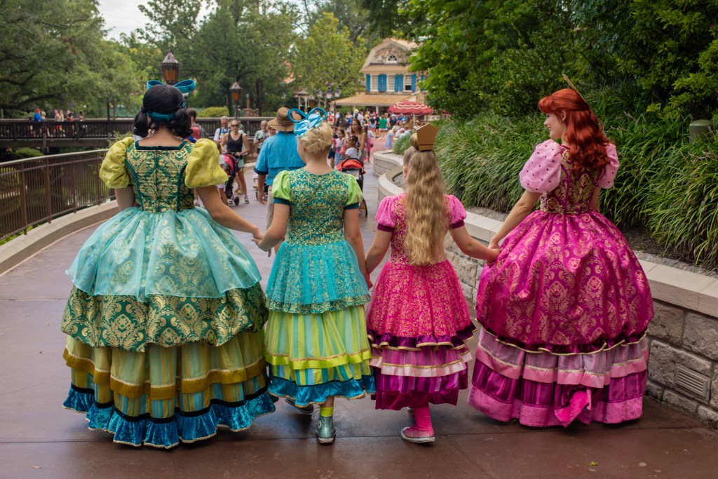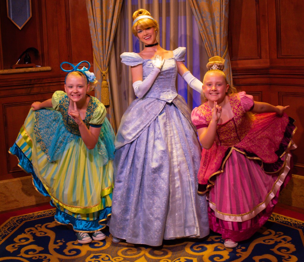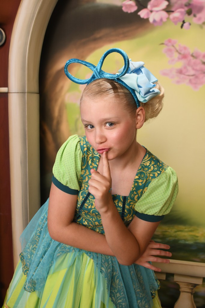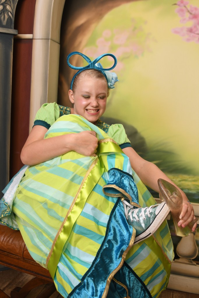 Our godmothers we’re going to walk us over to meet the stepsisters, but it was storming quite badly so instead we decided to go and get some photos at Sir Mickeys. Anyone can do this, not just Bibbidi Bobbidi Boutique guests, and it’s one of the girls’ favourite things to do. They had an amazing photographer who was doing all sorts to get the best shots of them, including lying on the floor!!
