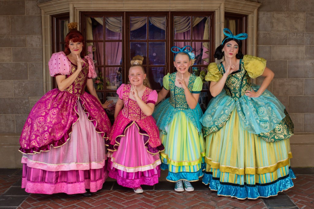 Afterwards the rain had eased but characters still weren’t out, so the girls and I went to meet Cinderella while Steve stayed on lookout. Cinderella was a great meet (the girls normally avoid face characters as they get very awkward around them) and as we exited the stepsisters were there do we jumped in the back of the queue and hoped the rain would hold off.