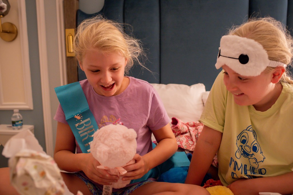 Polly slept relatively well (Winnie, not so much!) but they were still awake just after 5.30am full to the brim with Disney birthday excitement. Luckily, the birthday fairy got the memo and delivered a few presents to the hotel, so they spent some time opening those.