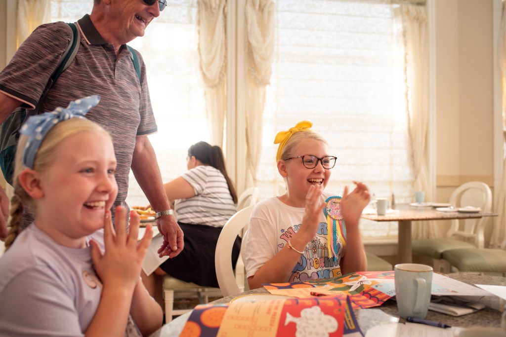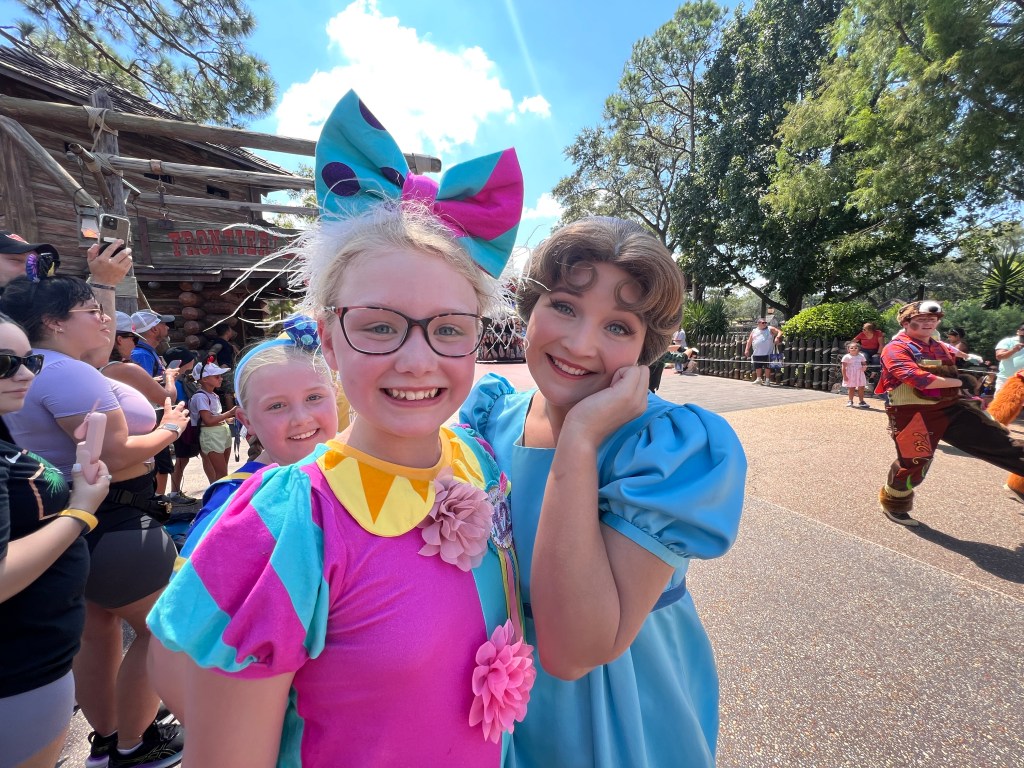 The cast member who was with the sisters asked if we’d mind letting people ahead to be last in line, which we didn’t mind at all, and realised when we got to the front it was so the sisters could not only spend more time with the girls, it was so they could walk them through the park. They were with them almost 10 minutes and it was the funniest, most amazing meet ever.the girls couldn’t stop smiling!