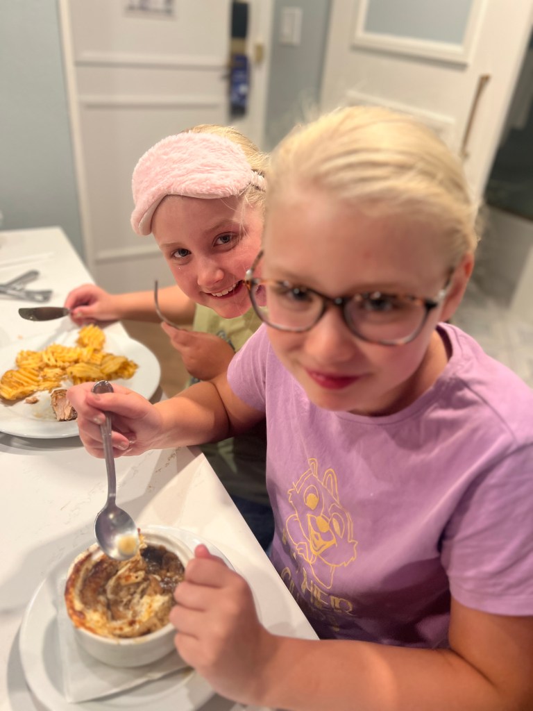 We’d changed plans for today so many times, but as Polly only had two requests: to eat French onion soup and hug Daisy we eventually decided on Grand Floridian breakfast followed by a bit of time in the pool and then Magic Kingdom for the afternoon. The girls had no idea that my parents flew in yesterday, so we’d arranged for them to meet to surprise the girls at breakfast. They came in just as we’d sat down and the girls’ faces were an absolute picture.
