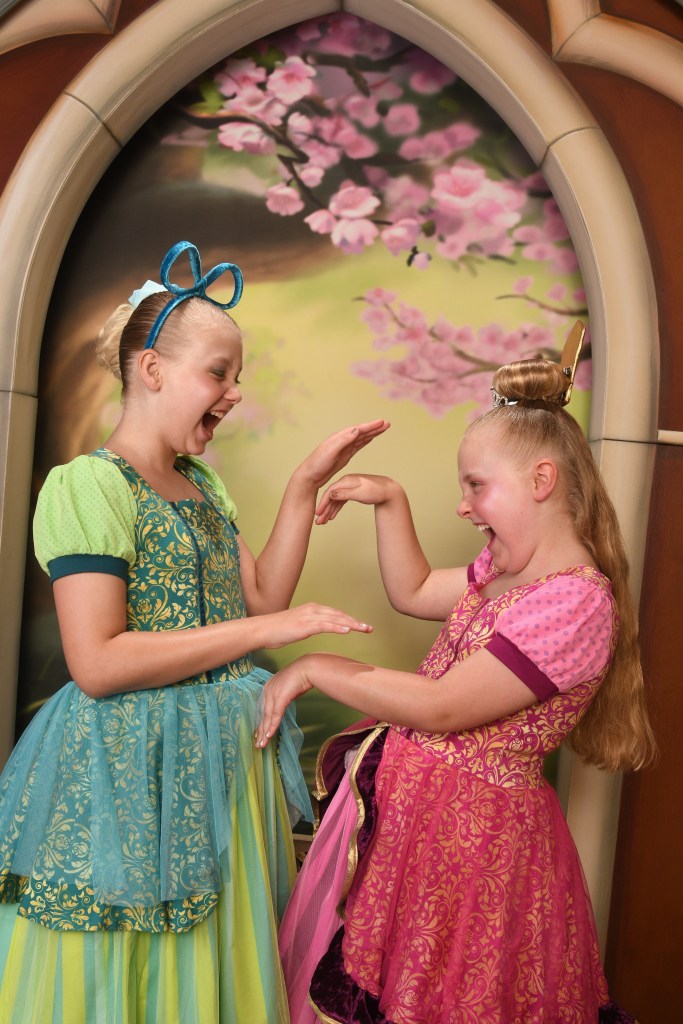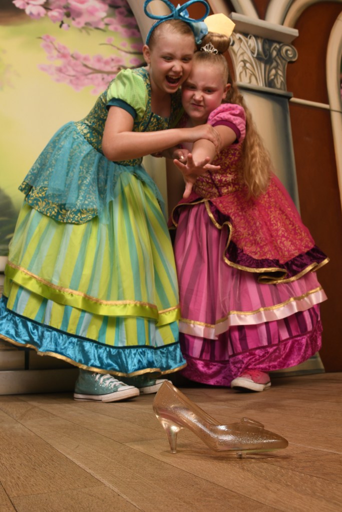 It was then almost time for the girls’ Bibbidi Bobbidi appointment. The girls couldn’t wait to see their special Fairy Godmothers and loved that Aimee (Polly’s godmother) took them to the changing room this time as well as doing the makeover. They’d chosen to be the stepsisters this time, which was quite a challenging sew, but they absolutely loved their dresses and the fact they were a proper pair. If you have two children you can request that you wait until there are two chairs close to each other, which we always do, but it can mean waiting a bit longer.