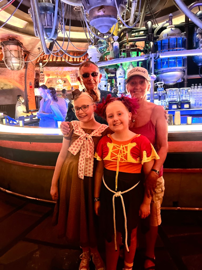 It was actually pretty quiet early on, so we managed to do Rise, Slinky, Toy Story Mania and Mickey and Minnie’s Railway, which were the only rides everyone wanted to do today. We then did Muppets (my dad’s favourite- we always take a photo of the girls next to the fountain for him but this year they got one together),Indiana Jones, Frozen and (because Polly apparently saved the best for last), One Man’s Dream! We also got a walk up to Oga’s Cantina.