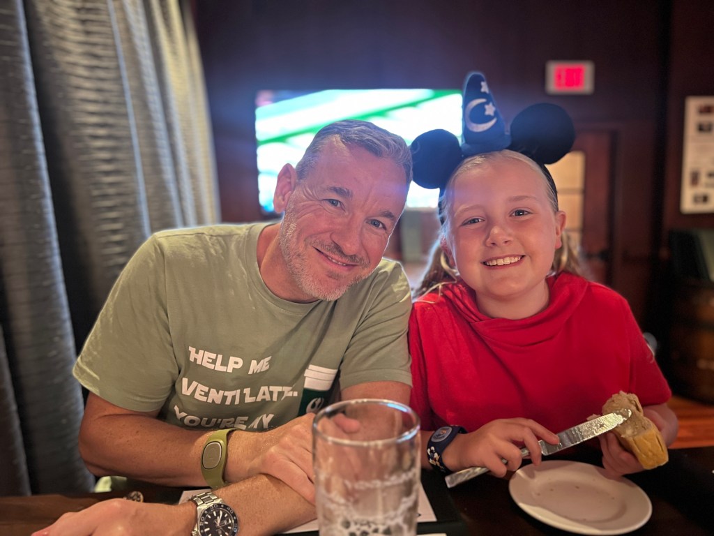 We had a few hours in the pool where Arlo played with the girls, before heading to the room to get ready for the evening. We had planned on Epcot for tea, but it had given rain out so decided on a snack at Shula’s Lounge at the Dolphin instead. I’d heard great things about the food there but it’s rather pricey, and we didn’t know how fancy it would be, so decided to suss it out in the lounge first. I have to say that although the food is definitely on the pricey side, it was absolutely amazing. Polly had French onion soup (again!), Winnie had a kids burger which was huge, I had swordfish and Steve had steak. Service was amazing and it was a lovely setting. We could have stayed there all night (although may have had to sell a kidney to fund it!!)