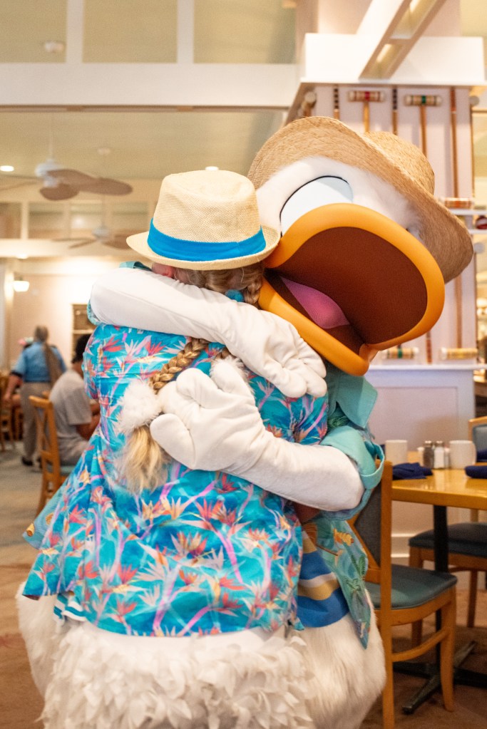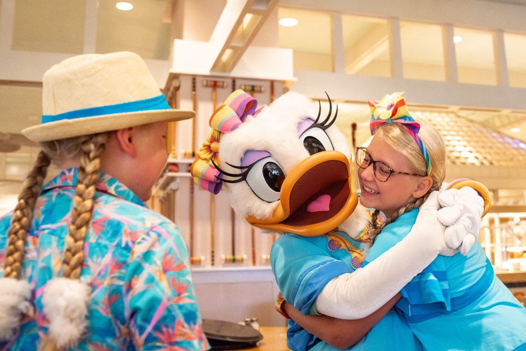 We arrived at the restaurant a bit early but were able to check in and were seated almost immediately. We immediately got a huge hug from Megan, which was so nice. We then sat down and almost immediately met Daisy. If you haven’t eaten here before, the character interaction is always great. The tables are nicely spaced out and rarely full, so the characters get to come around at a nice pace and you never feel rushed. They also often come round more than once, and do a little dance party at times. Plus, the food is always fresh with loads of choice. All the characters today were a lot of fun, especially Donald and Goofy who seemed to have had too much caffeine! Their handlers definitely had their work cut out!