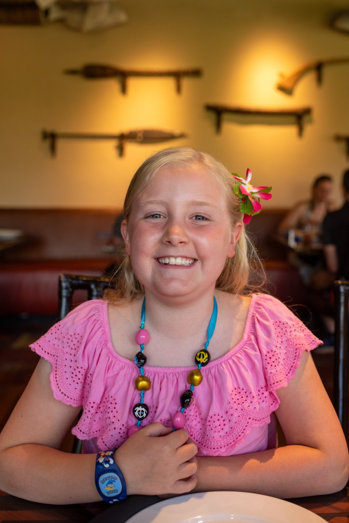 We then headed to the pool for the girls to play the games there for a few hours. They really enjoy the activities at the Polynesian, and I enjoy the fact that the pool water is actually cold!! We had no plans for tea, but the girls suggested Ohana. Now, I’m always very torn with Ohana. Whilst I know there’s a lot of food, and that it’s usually pretty good, I still think it’s very expensive, and I’d actually said we’d go to Tambu lounge instead this trip. However, we’ve reached that point in the trip where it’s almost home-time, and saying no just feels too mean, and so I checked the app and booked a table for us (well, for us and an extra imaginary person as we could get a table for 5 at pretty much any time but no tables for 4).