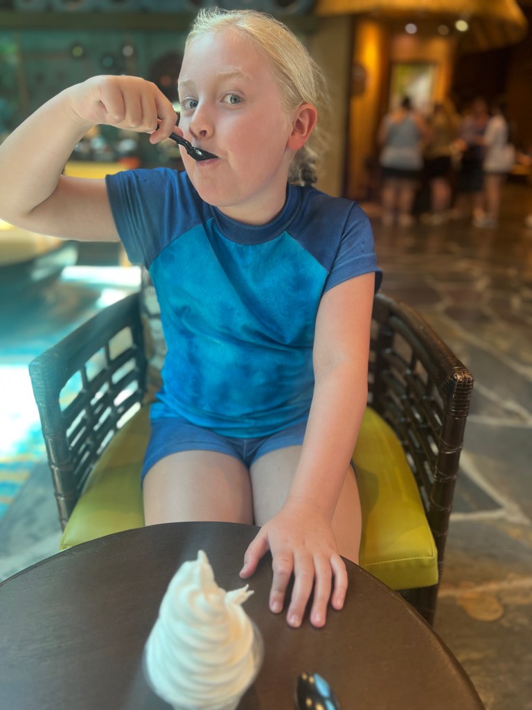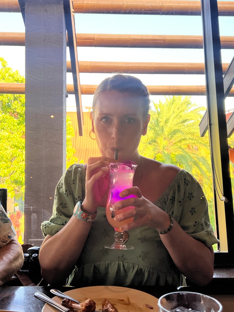 As it turned out, Polly asked to have a nap when we got back which lasted 2 hours (unsurprisingly Steve offered to stay with her and may possibly have rested his eyes for a minute or two!) whilst Winnie and I set off to the pool. Except we never made the pool because we ended up in the shops. Now, as a family, we are definitely not big shoppers. I remember taking the girls to Derby once when they were about 3 and 4 to watch a show at the theatre, and walking into the shopping centre at which point Polly asked why we were at an airport, because that’s the only time they’d been to a place with lots of shops! However, Winnie definitely got the shopping gene! She loves it, and can spend hours in one shop examining everything. And that’s exactly what she did! Who knew one shop could hold so many bucket hats worthy of trying in, so many pins to be examined in microscopic detail, and so many cups that needed testing for how easy they would be for me and my gammy fingers to hold! The only thing that finally got her out of there was the suggestion of a dole whip!
